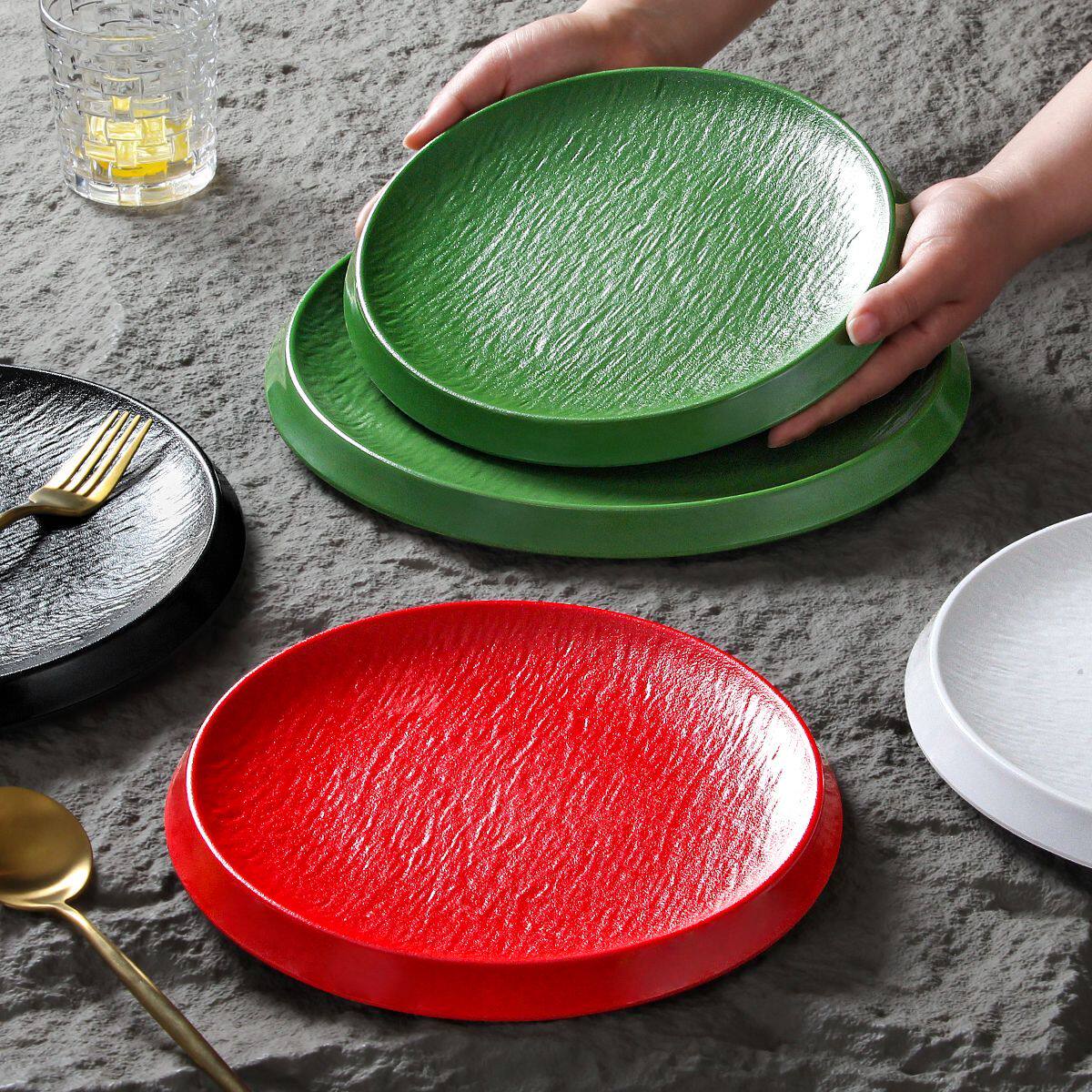 📚 密胺餐具盘子餐厅饭店圆形摆盘西餐意面牛排沙拉盘商用