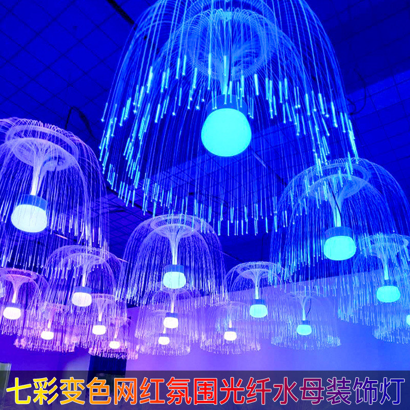 📚 网红七彩变色光纤水母灯户外防水氛围灯串太阳能遥控彩灯装饰吊灯