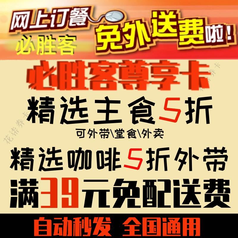 📚 必胜客会员优惠券五折主食5折尊享卡年卡半价宅享卡外卖免配送