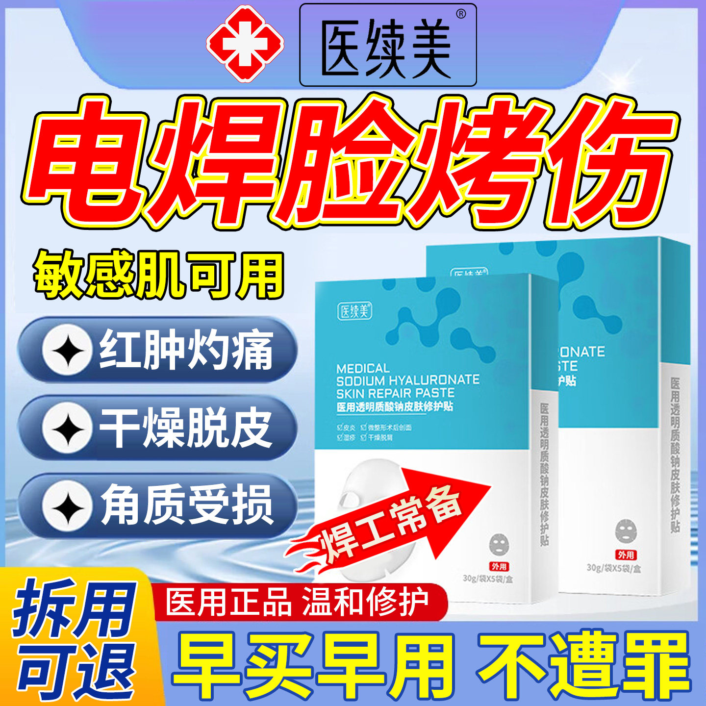 📚 电焊工烤脸上皮肤灼伤烫伤烧伤电弧修脱皮复泛红起皮面膜敷贴VX