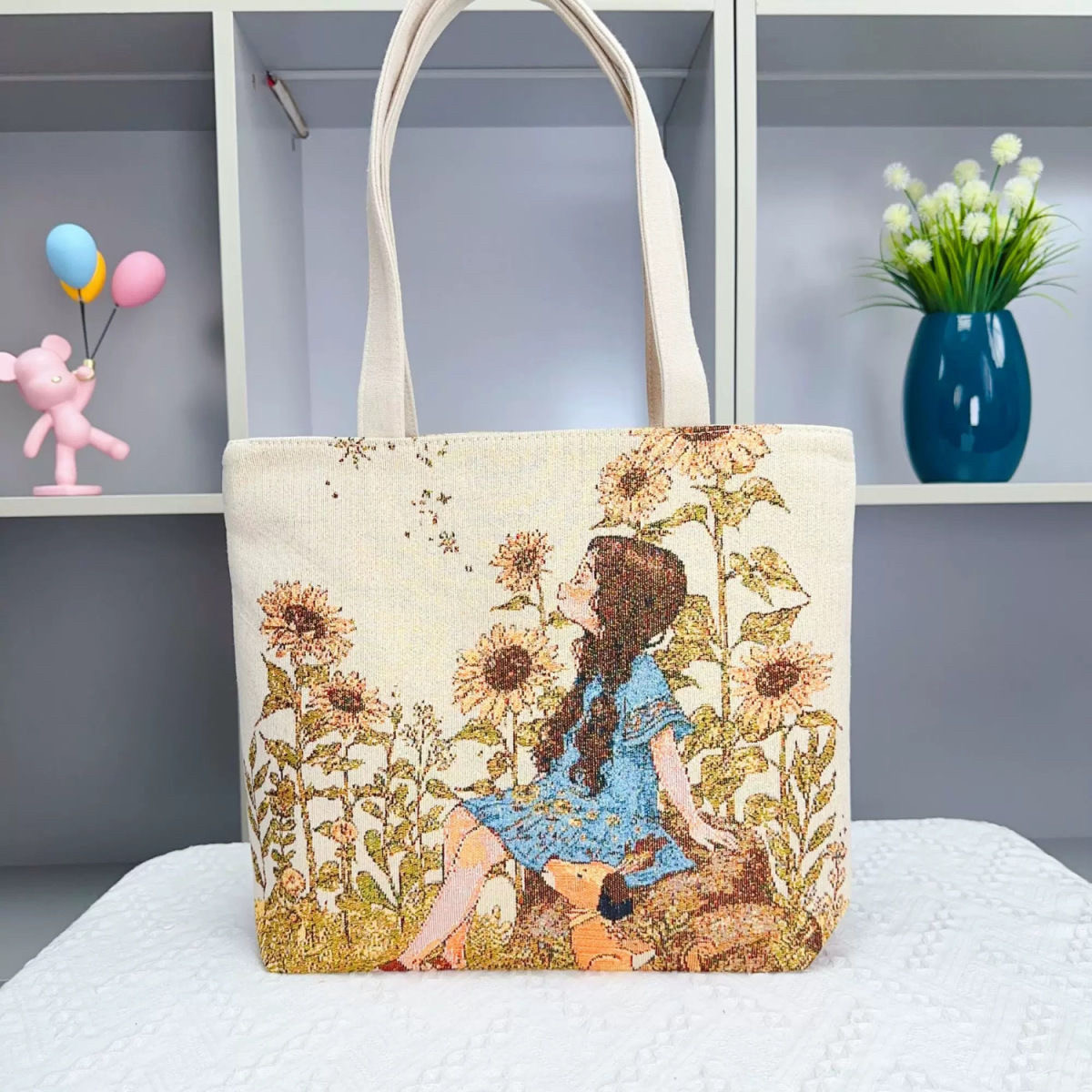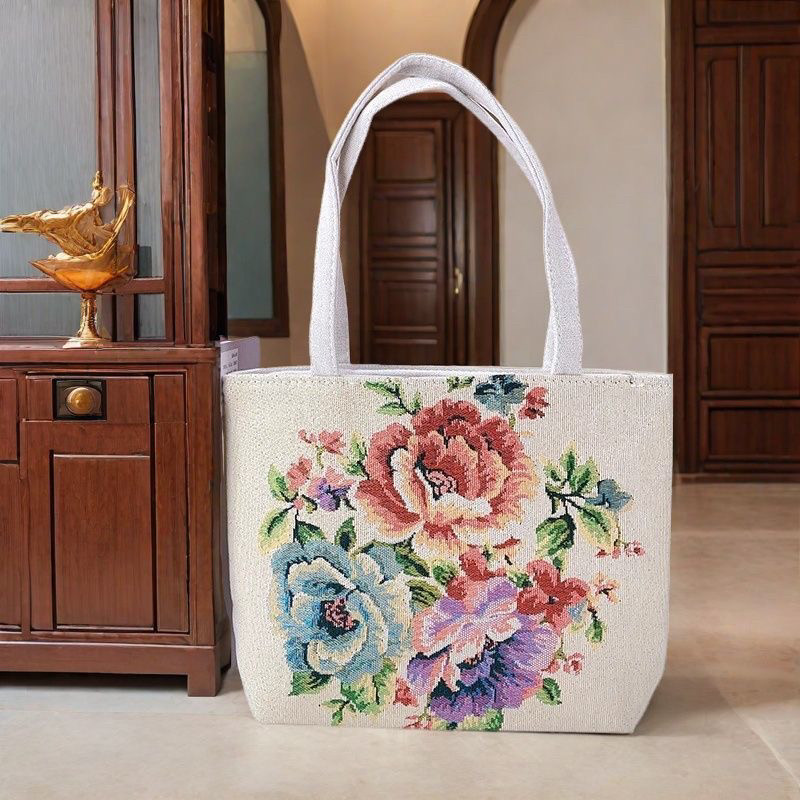 📚 双面金丝手提帆布小包耐磨耐脏时尚百搭款刺绣带拉链手拎外出