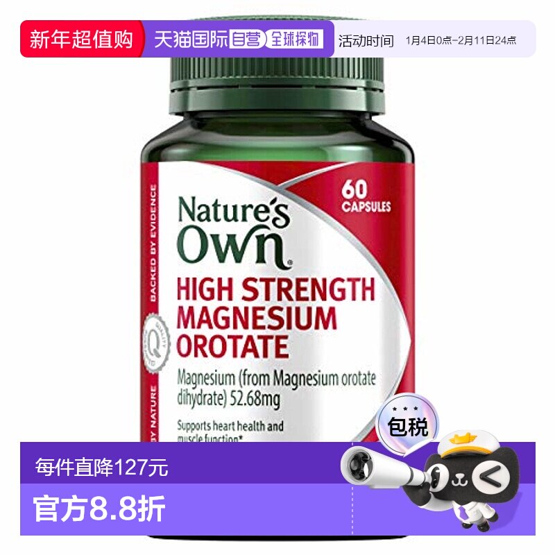 📚 澳大利亚直邮Nature's Own 高强度乳清酸镁胶囊 60粒/瓶
