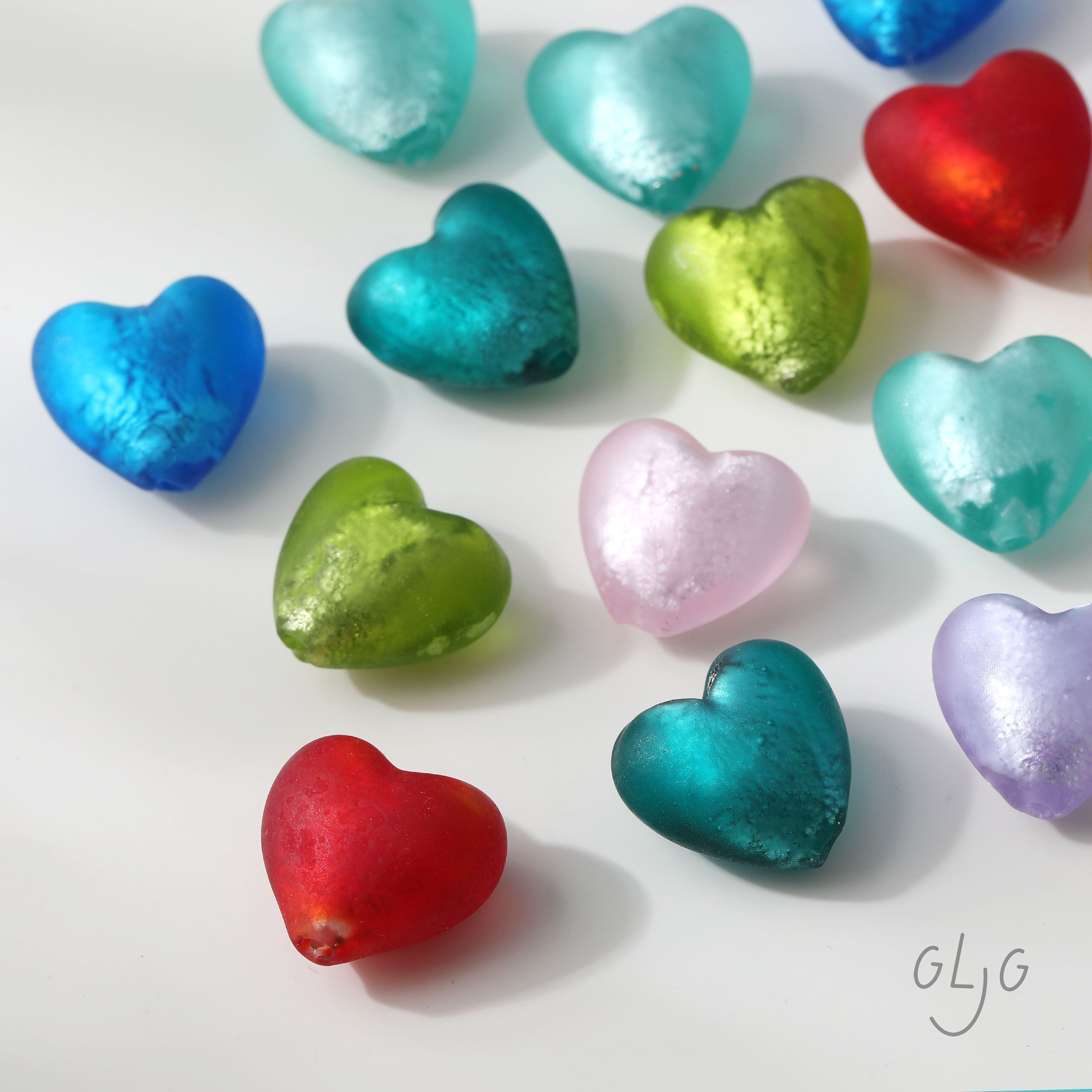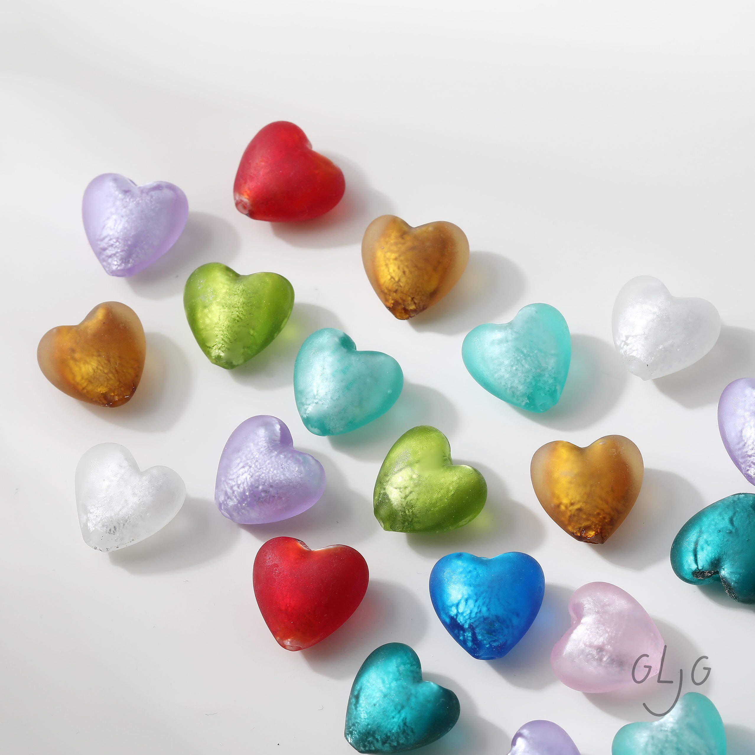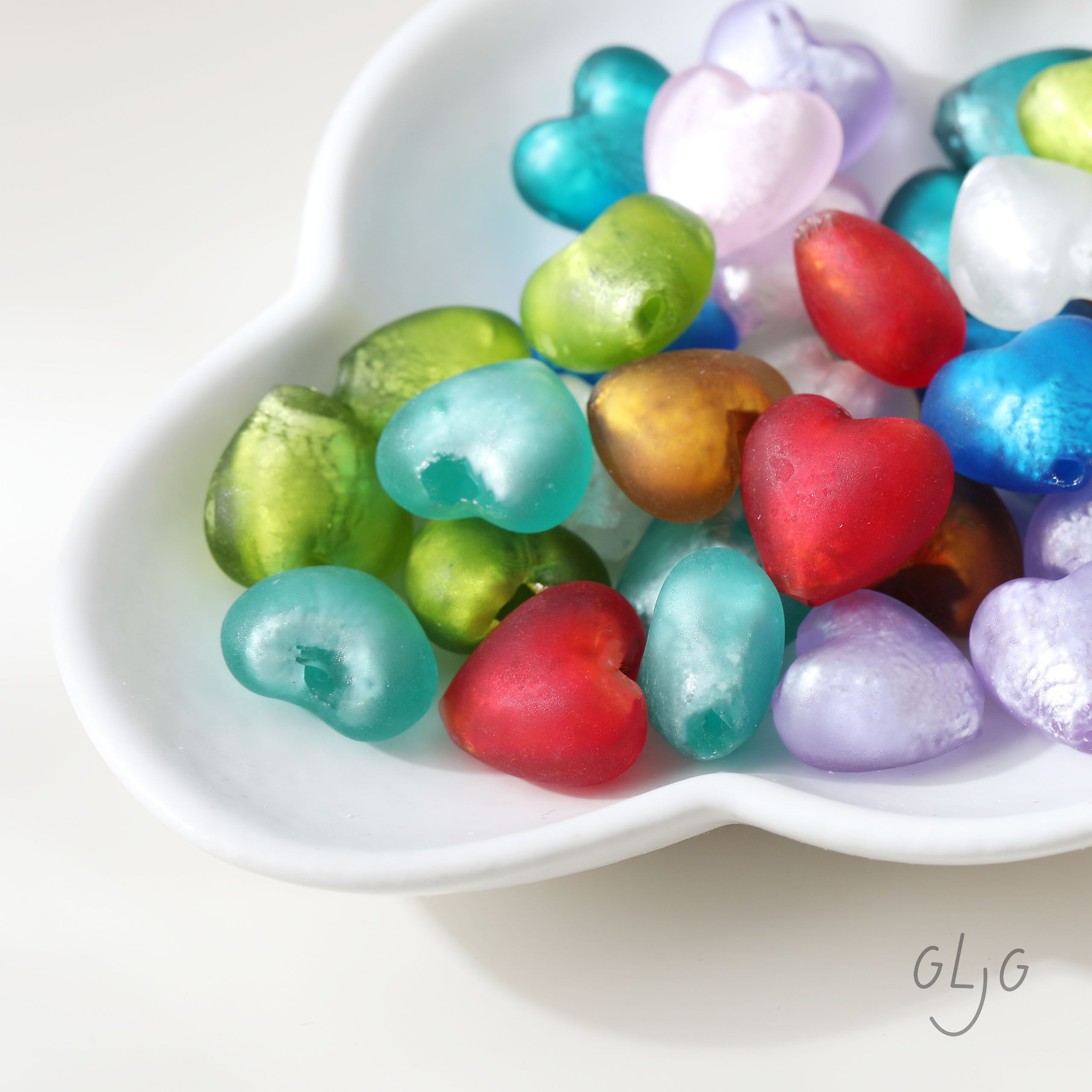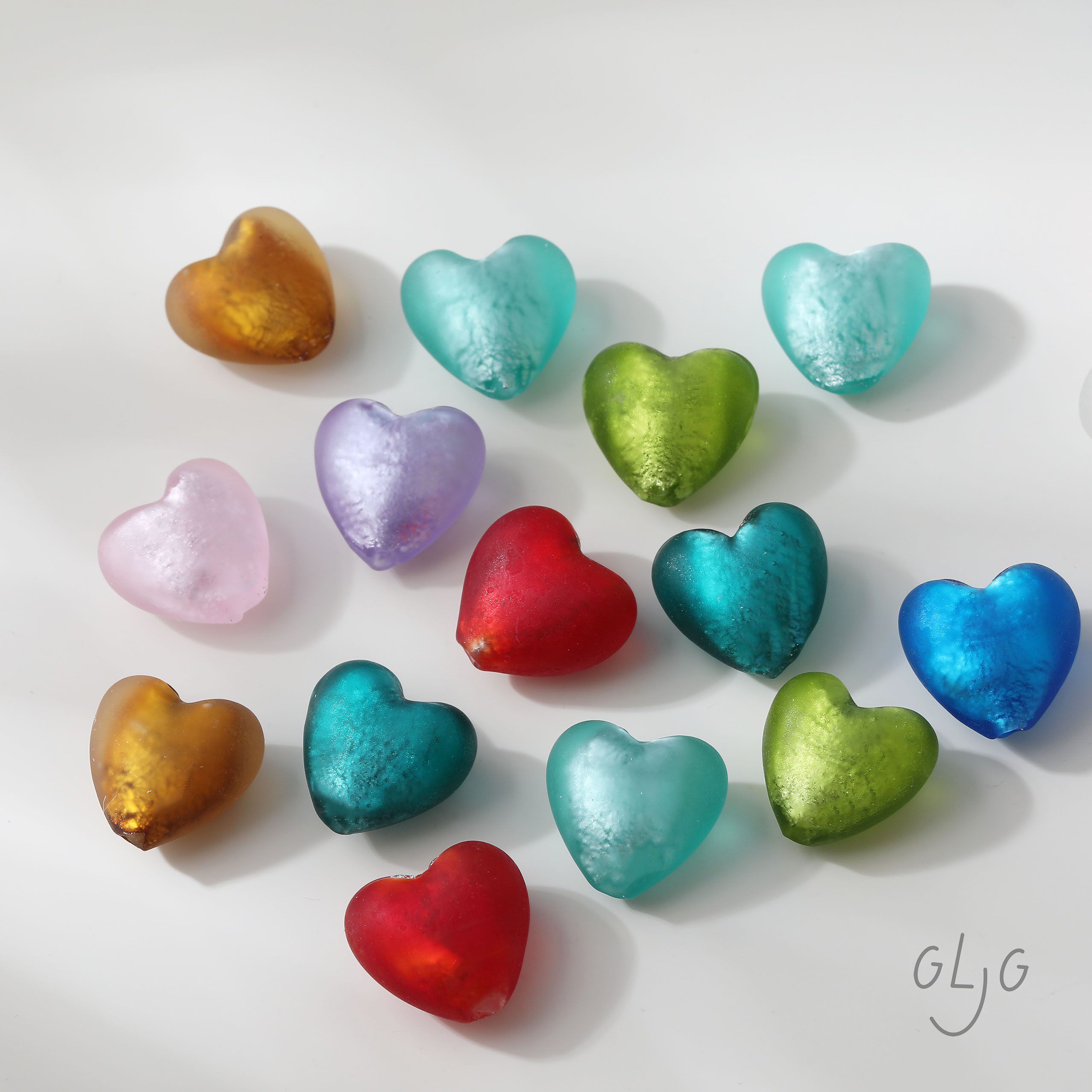 📚 手工银箔心形琉璃珠磨砂质感爱心diy手作项链手链耳饰材料配件