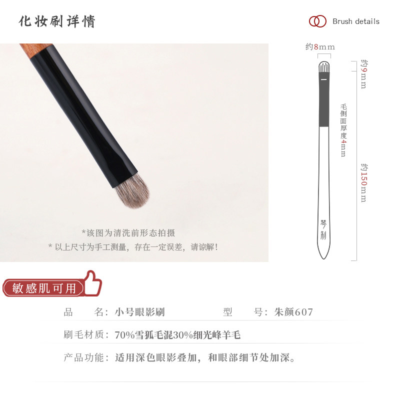 📚 琴制化妆刷朱颜系列607小号眼影刷细节刷上色晕染刷动物毛一支装