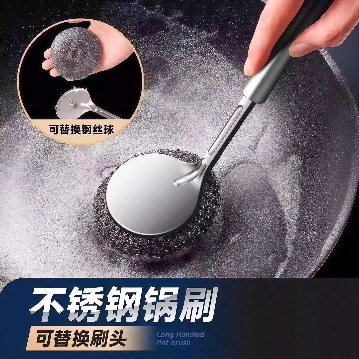 📚 不锈钢锅刷长柄洗锅刷清洁刷子家用大号钢丝球带手柄去污刷锅神器