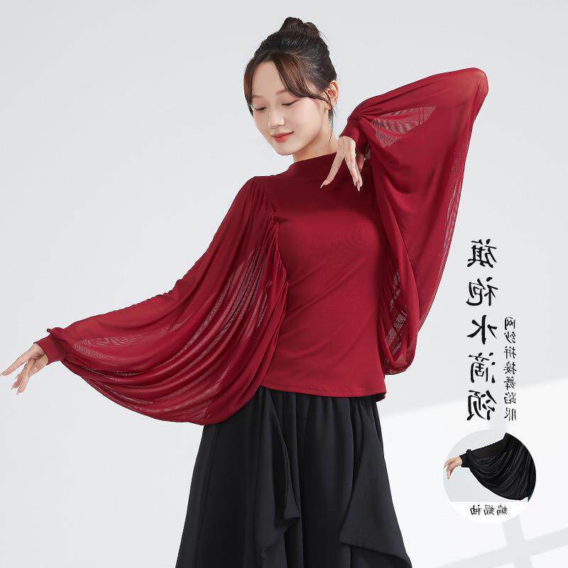 📚 袖服女领古典网纱上衣练功长袖新中式舞蹈旗袍蝙蝠服演出新款水滴