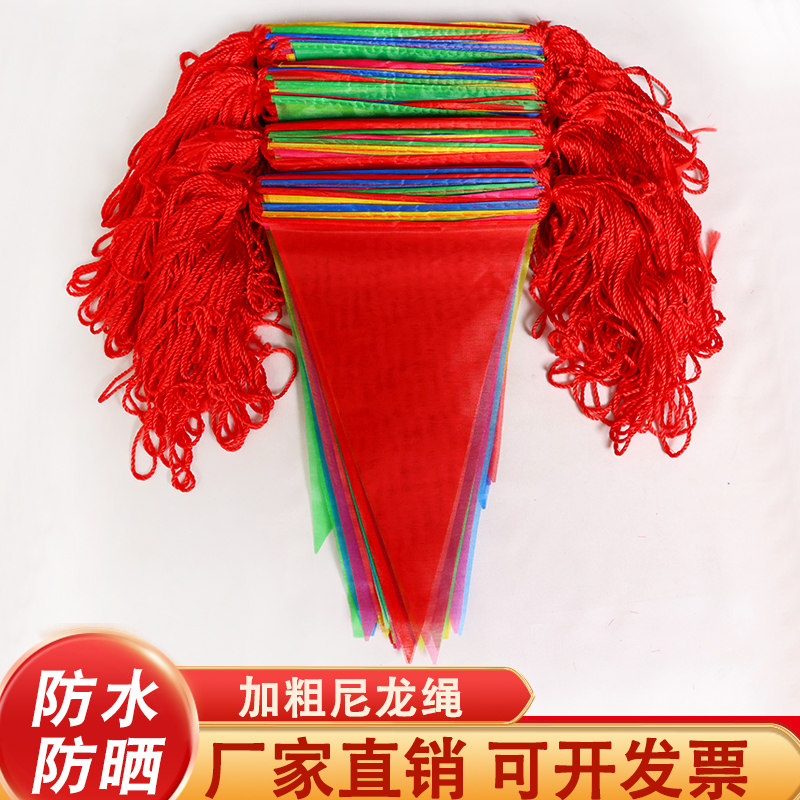 📚 户外工地警示婚庆开业装饰旗子三角彩旗小旗子五彩串旗子小红吊旗