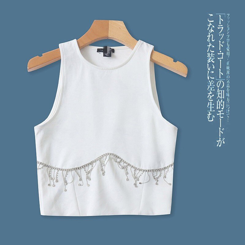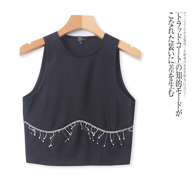 📚 GG5221外贸欧美时尚女士背心春夏新款圆领无袖通勤风钉珠装饰上衣