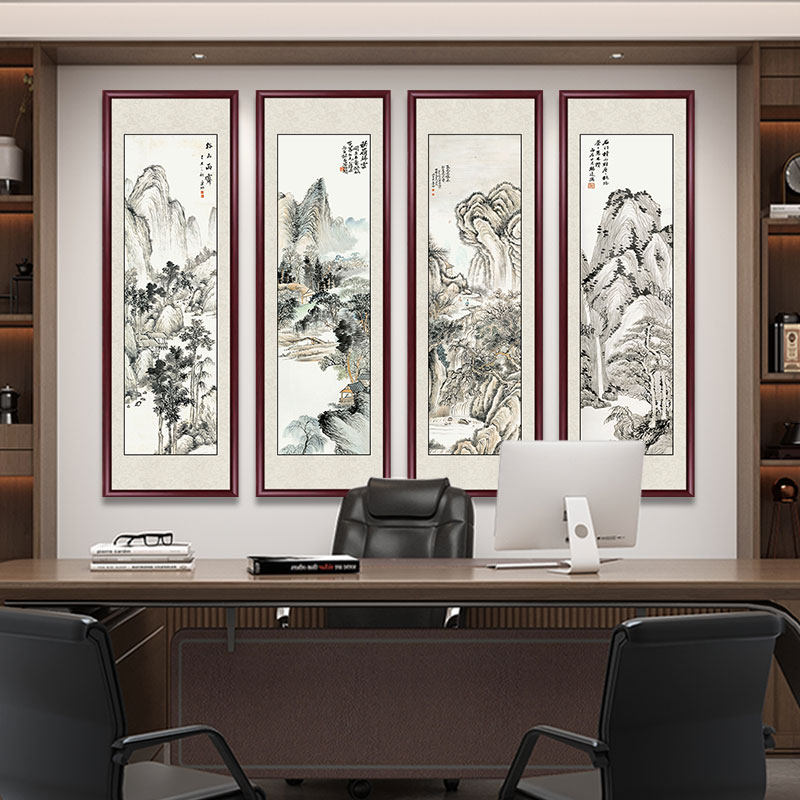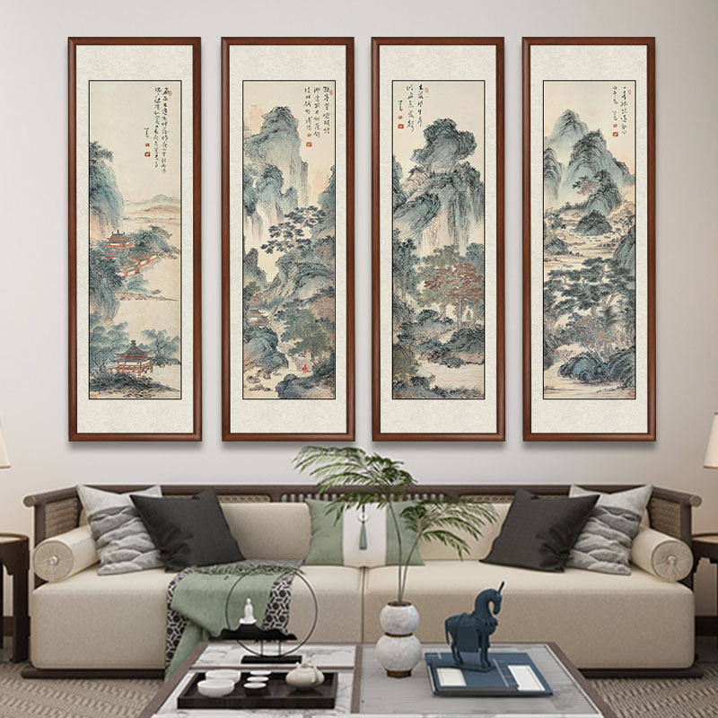 🎉四条屏国画山水画,让客厅瞬间升级🏞️
