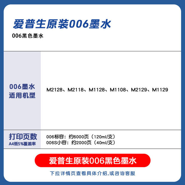 📚 爱普生006 006s M1108 M1128 M2118 M2128 M3178 M1129 007墨水