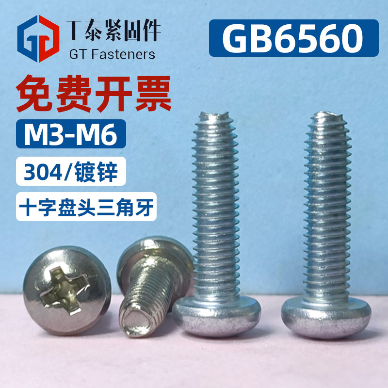 📚 GB6560平尾盘头三角牙自攻十字螺丝304不锈钢镀锌防滑自锁螺钉M6
