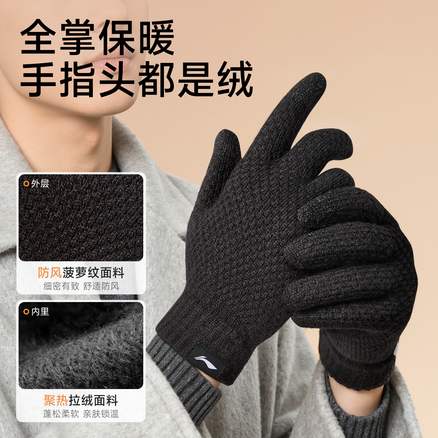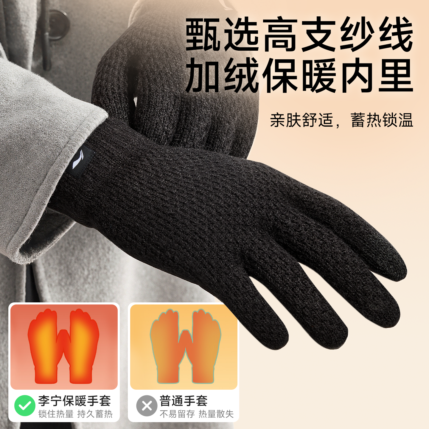 📚 李宁手套冬季御寒保暖加绒针织户外骑行车防风可触屏毛线男加厚女