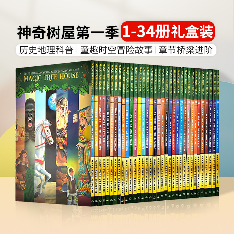 📚 神奇树屋第一季大全套1-34册新盒装 英文原版小说 Magic Tree House 分级阅读章节桥梁书 科普百科课外英语读物 儿童探险冒险文学