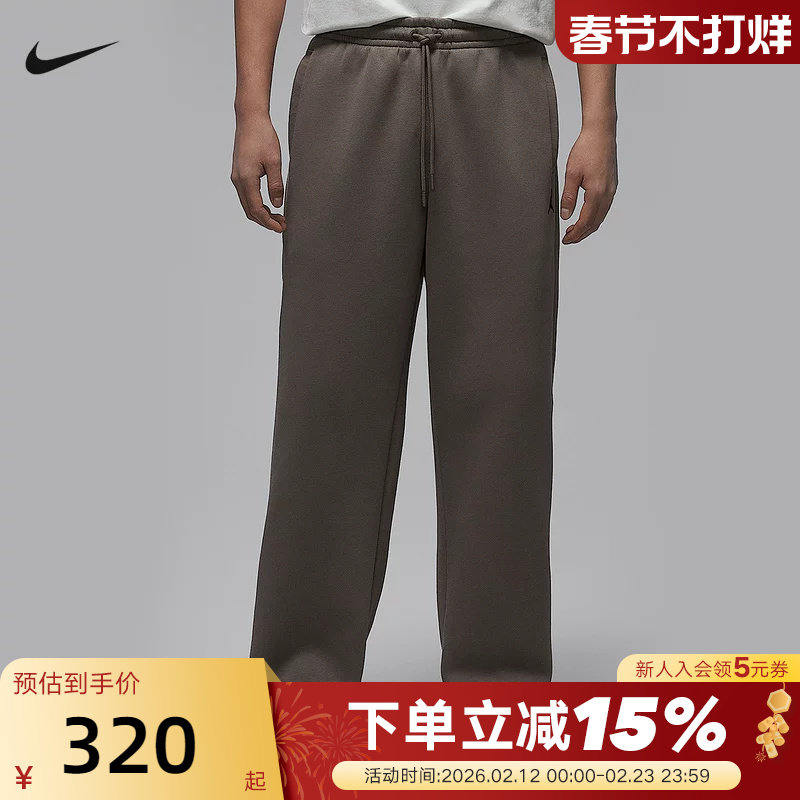 📚 Jordan耐克男裤子冬季刺绣运动裤宽松加绒棕色直筒长裤IB7239-040