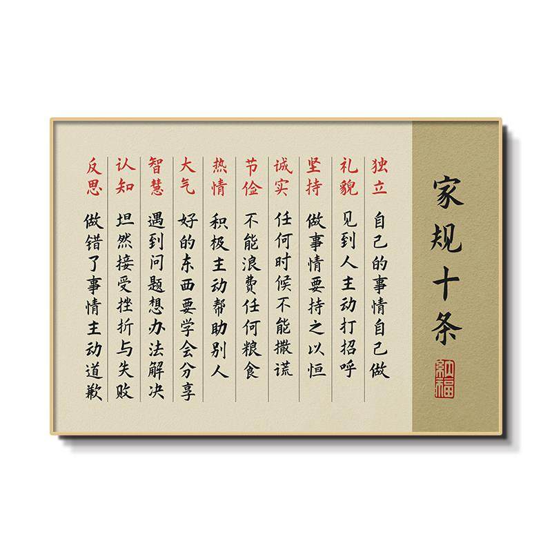 📚 定制家风家训家庭挂画励志名言家规十条字画孩子成长家教公约挂图
