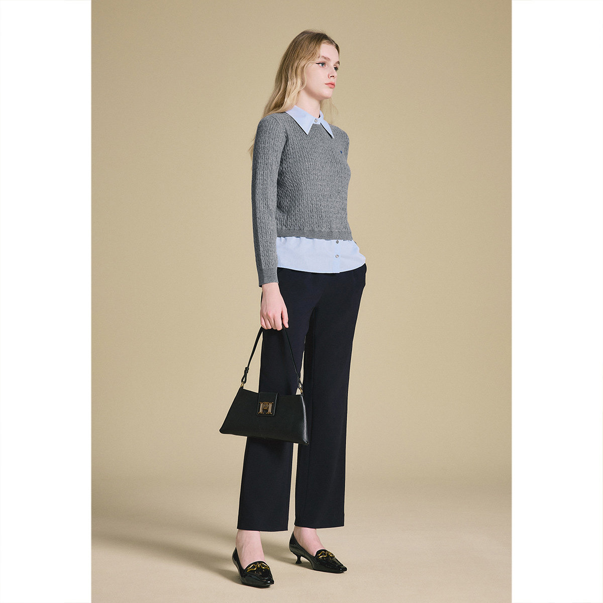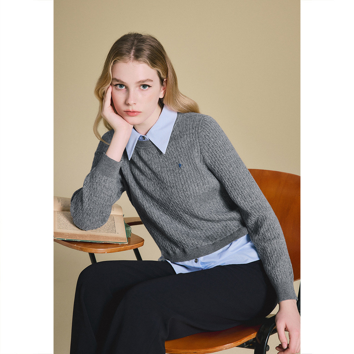 📚 PSALTER诗篇可拆卸衬衫领拼接减龄格雷灰针织套头毛衫2025春款