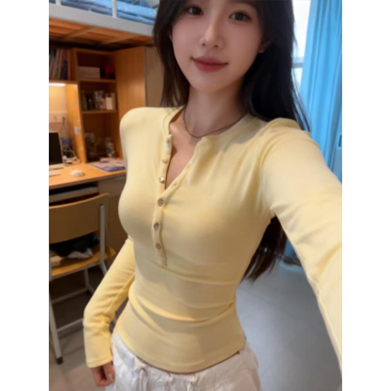 📚 纽扣德绒打底衫女秋冬内搭短款小衫辣妹修身磨毛上衣加绒保暖T恤
