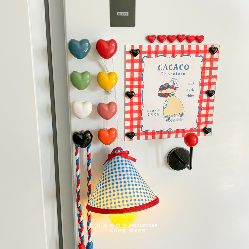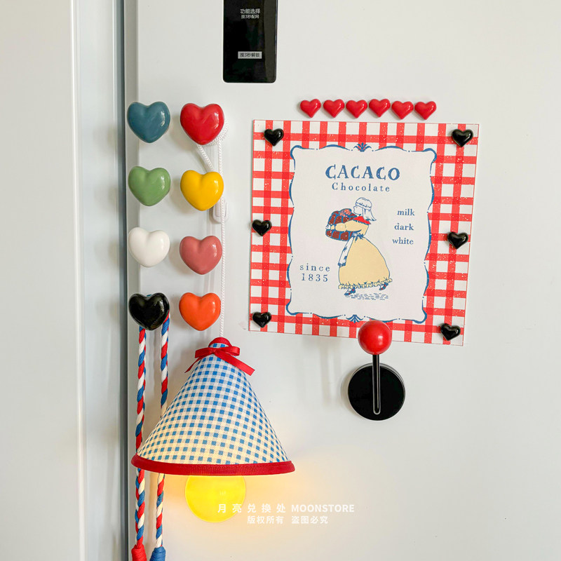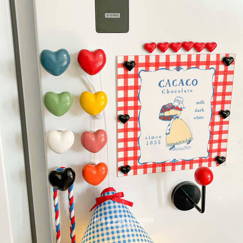 📚 韩国ins风多巴胺挂钩冰箱贴陶瓷爱心强力磁吸入户门洞洞板装饰