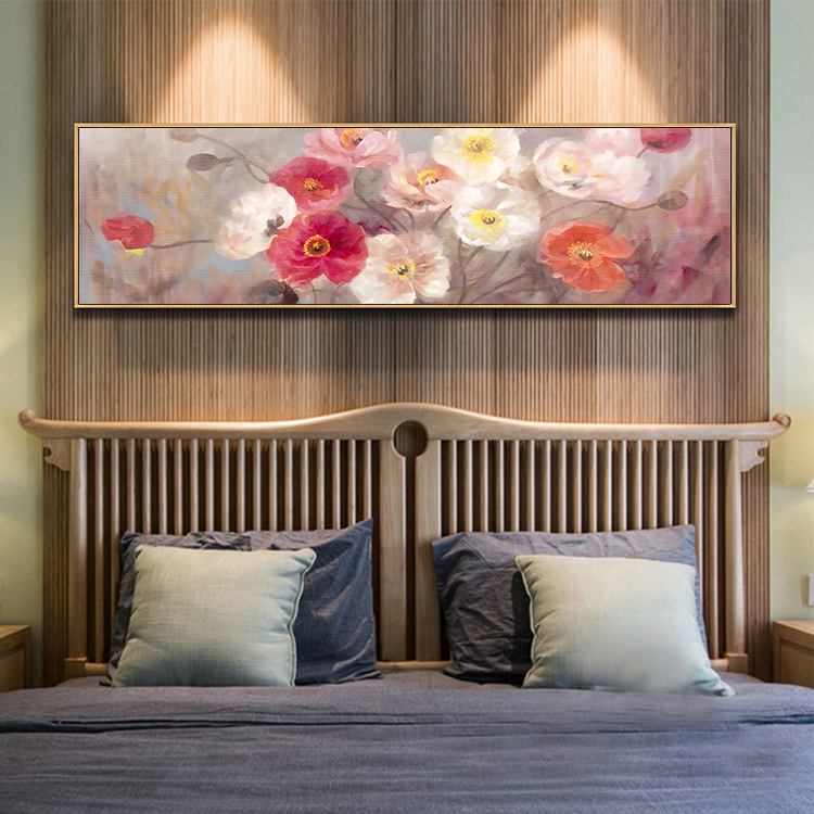 📚 351美式横向长条幅有框挂画 客厅卧室床头挂画欧美花卉油画装饰画