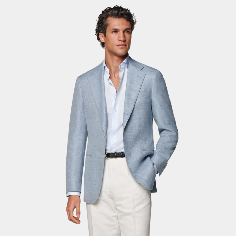 📚 SUITSUPPLY外套浅蓝色羊毛混纺男士西装上衣