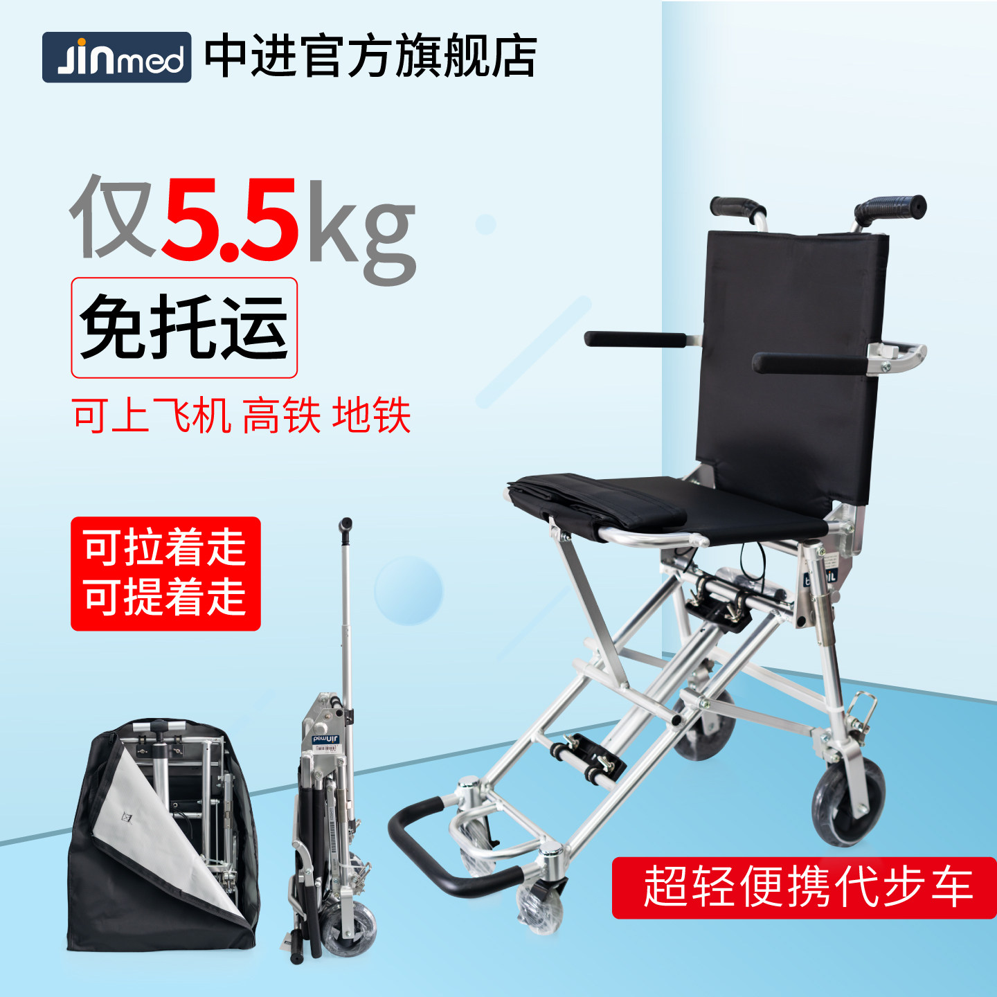 📚 中进轮椅207可折叠轻便小型老人专用超轻便携式旅行简易代步车