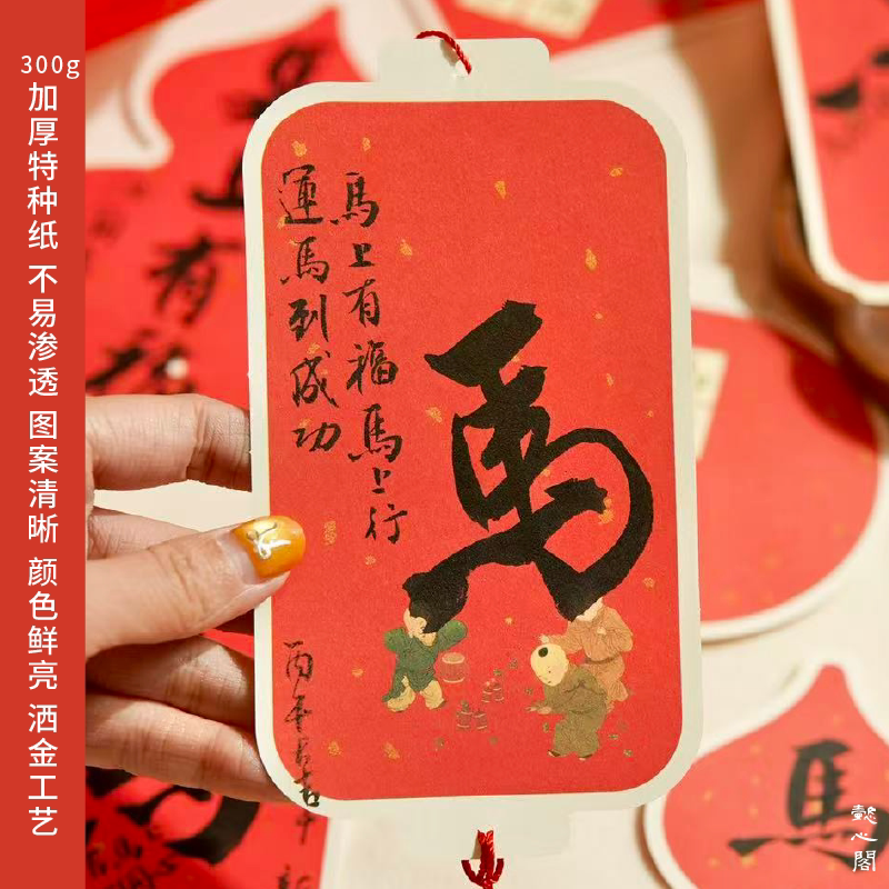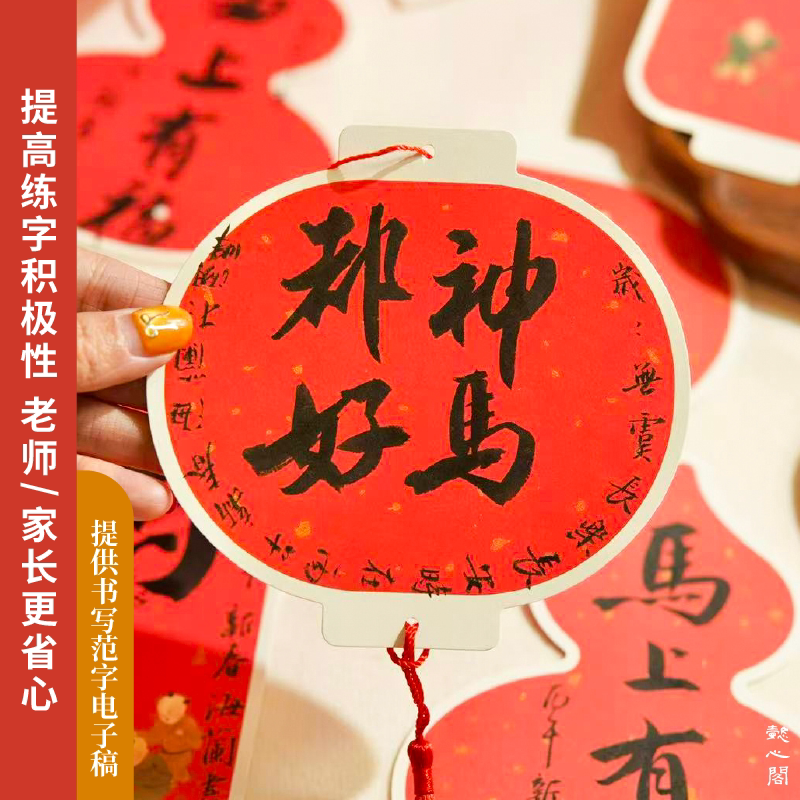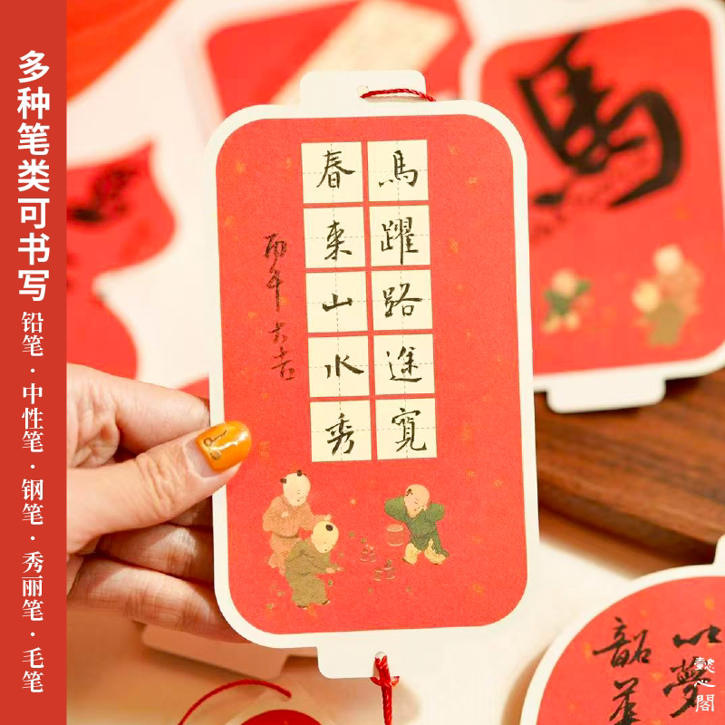 📚 2026马年新年红色书法灯笼挂件作品纸节日烫金毛笔小楷古诗练字书签