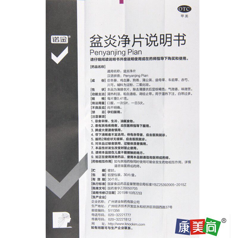 📚 诺金盆炎净片30片/盒清热利湿和血通络调经止带湿热下注白带过多
