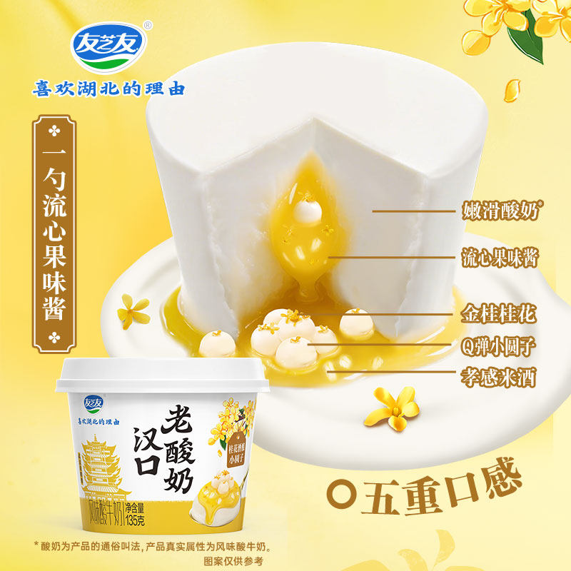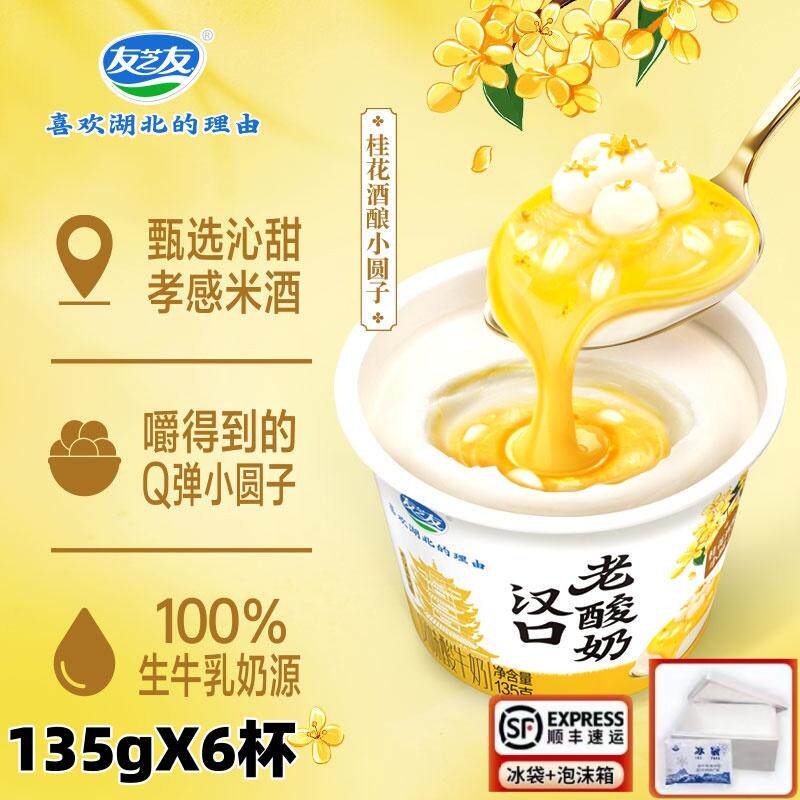 📚 友芝友汉口老酸奶桂花酒酿小圆子风味酸牛奶营养早餐135gX6杯