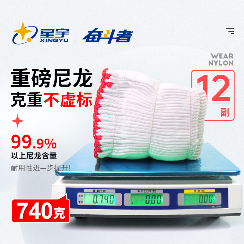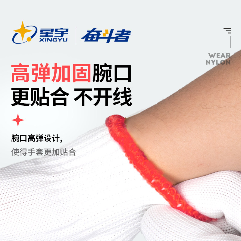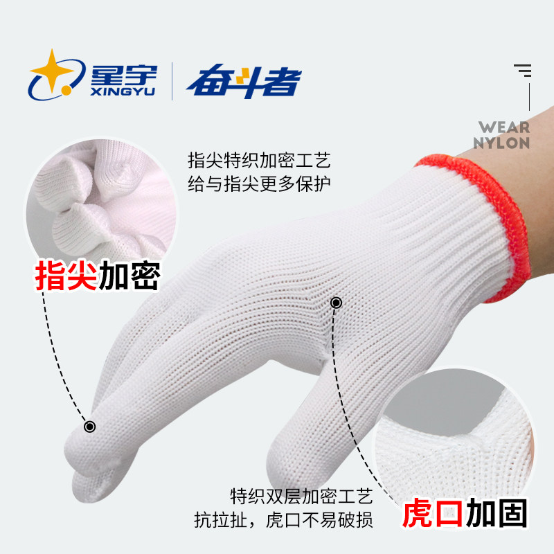 📚 星宇尼龙线手套劳保工作耐磨纱线劳工白手套加厚批发干活工地棉线