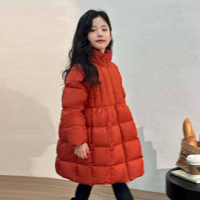 立领中长防风冬装女童