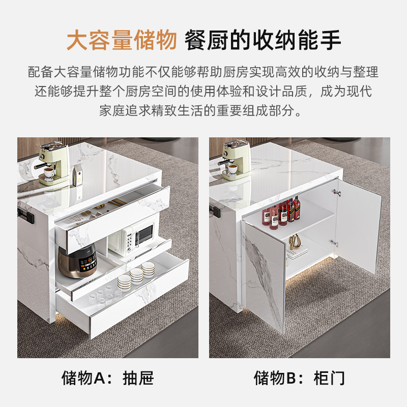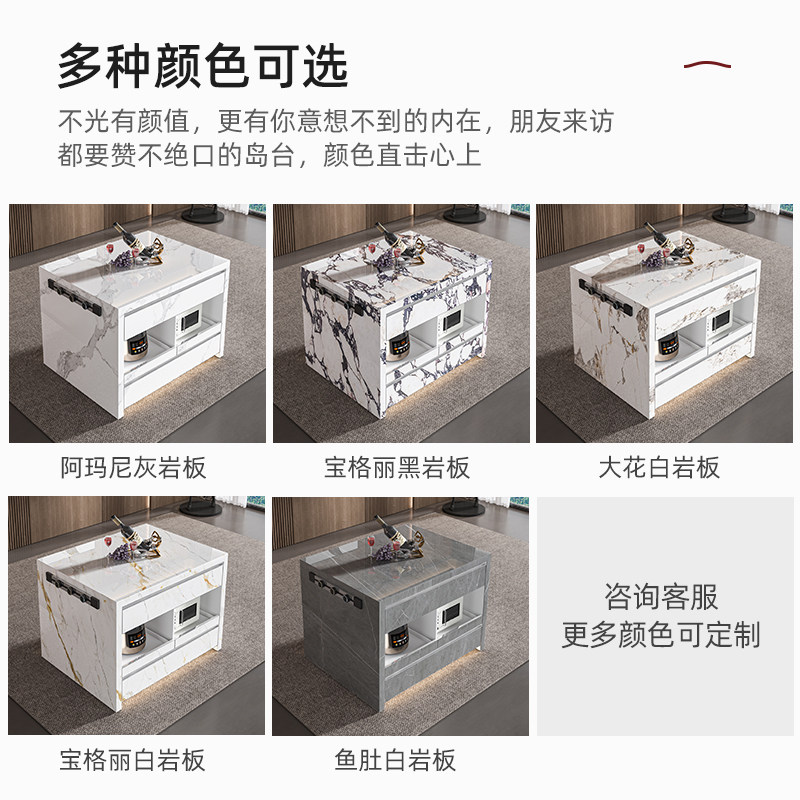 📚 极简单独岩板中岛台餐桌一体餐厅小户型窄导台岛头茶桌厨房岛台柜