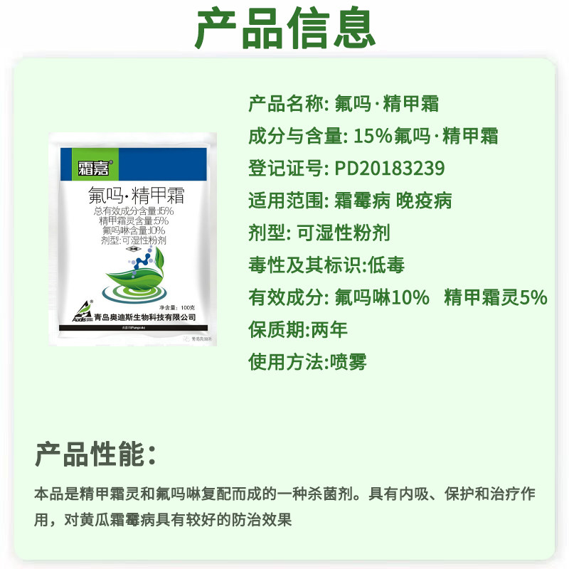 📚 霜嘉15%氟吗啉精甲霜灵 黄瓜葡萄霜霉病辣椒土豆晚疫病杀菌剂30g