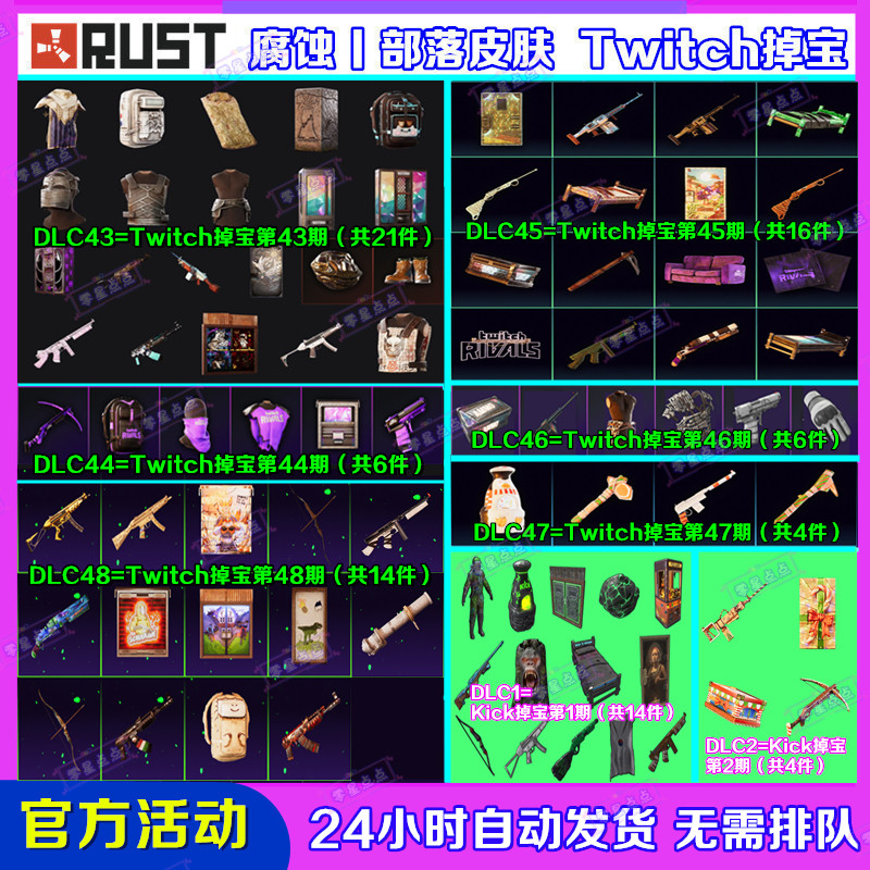 📚 Rust腐蚀Kick掉宝1期代领Twitch直播老鼠台47期48期武器皮肤礼包