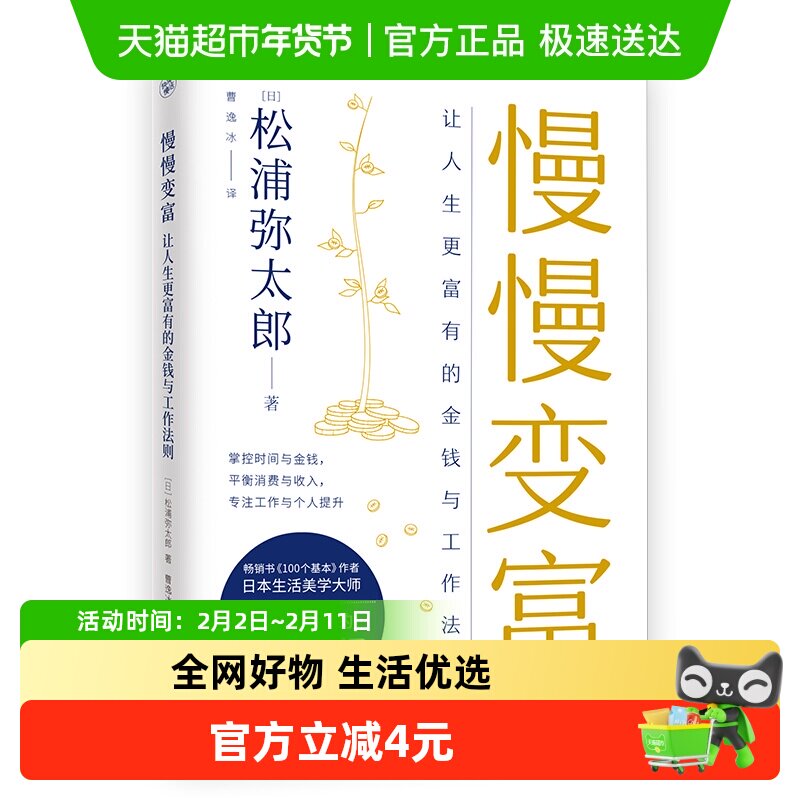 49¥ CZ005 g6r0UOgzBlu¥ https://m.tb.cn/h.7wJdj8y 正版包邮 慢慢变富:让人生更富有的金钱与工作法则松浦弥太郎著 --------------------- 【原售价】32元 【现售价】28.7元。