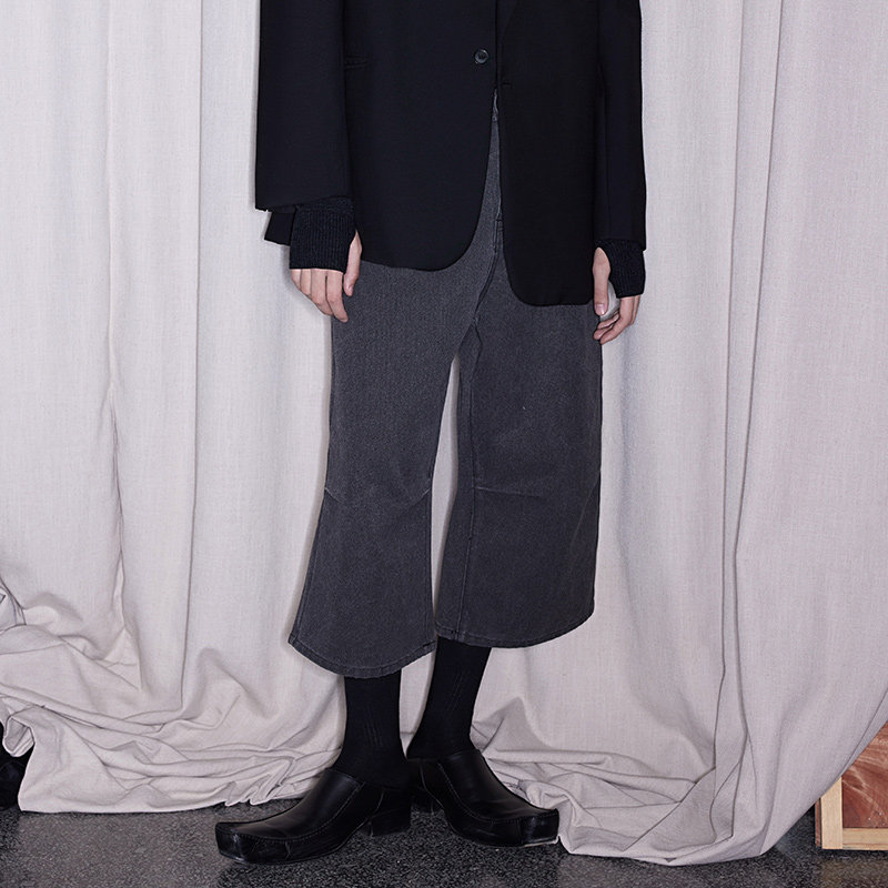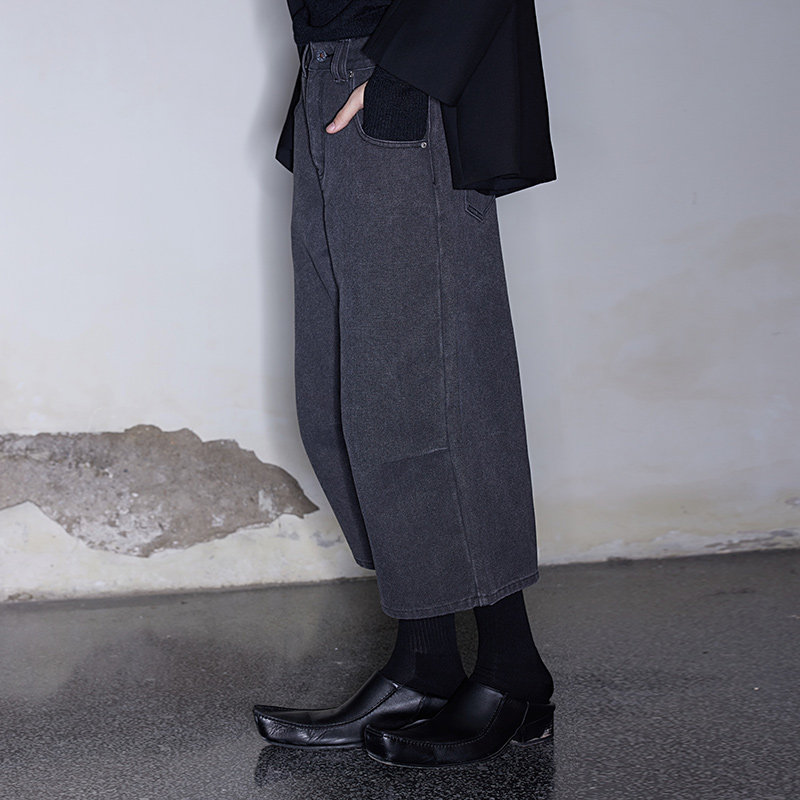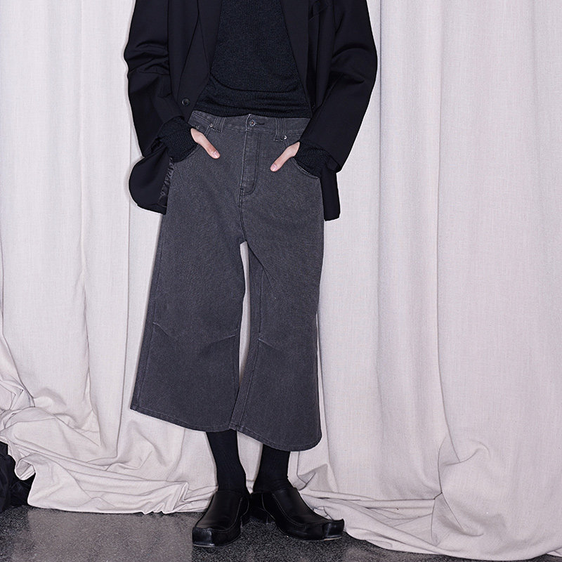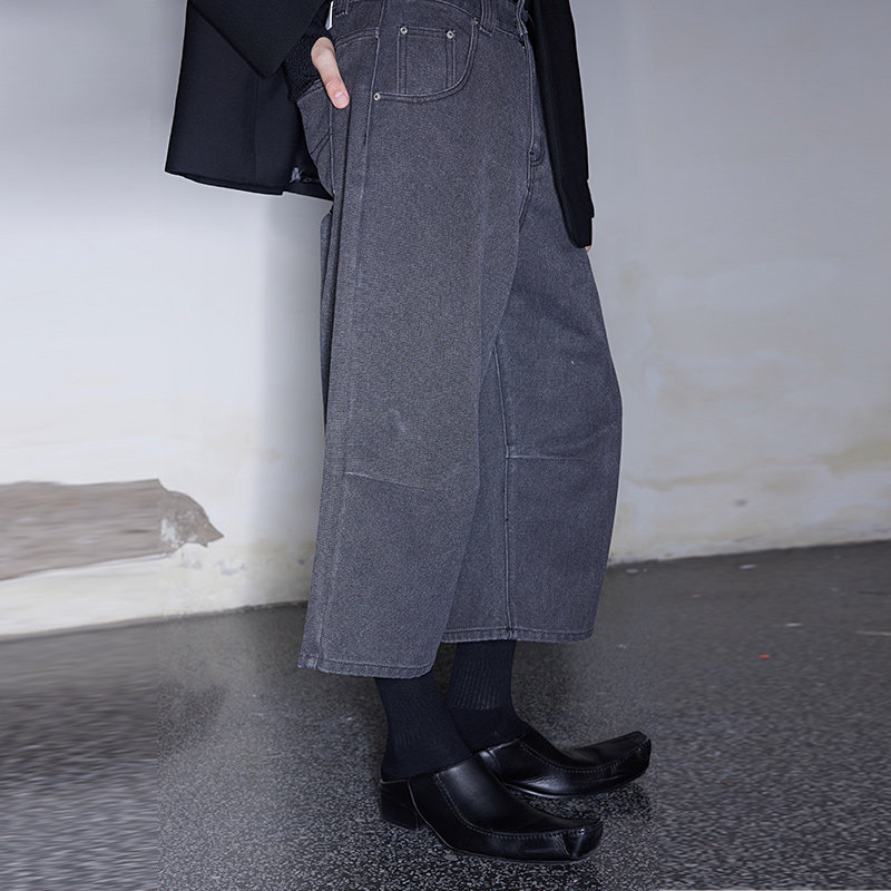 📚 FSG 粗质珠帆布深灰洗水打褶八分裤