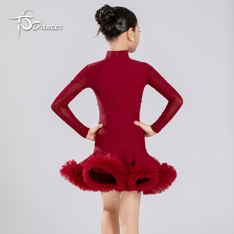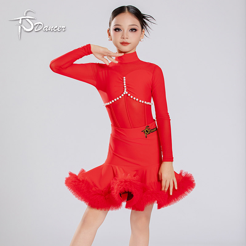 📚 新品拉丁舞服女童长袖高级感少儿练功服儿童花边训练规定服表演服