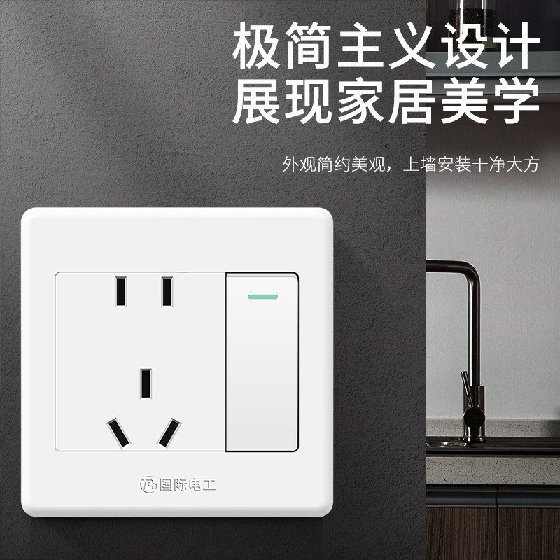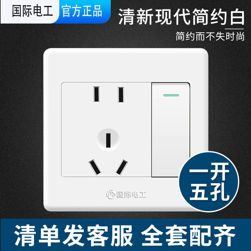 📚 国际电工86型墙壁开关插座面板 家用一位单控一开单控带5五孔插座