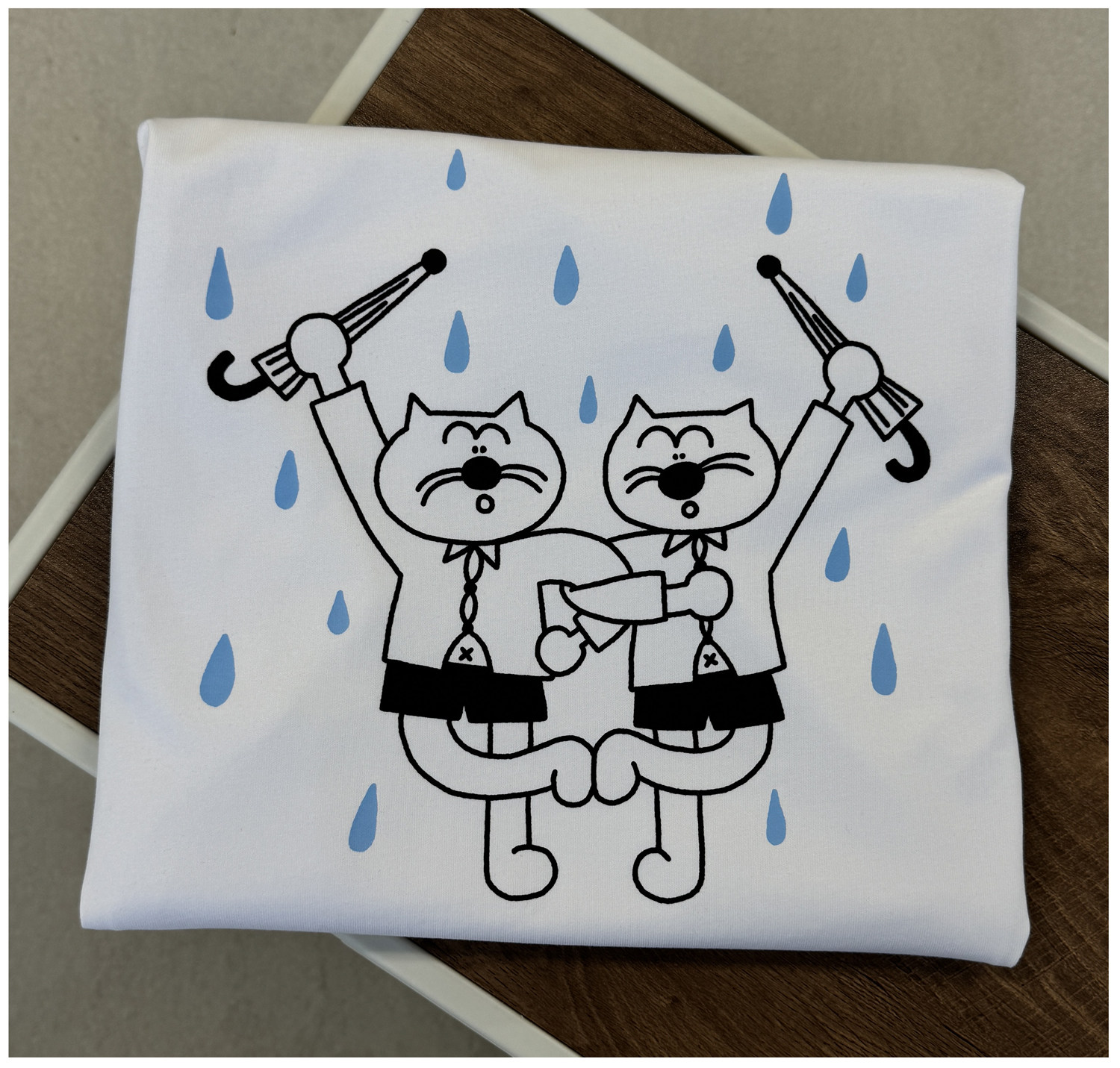 📚 原创插画合作款 享受无法回避的雨天 男女款猫咪印花纯棉短袖T恤