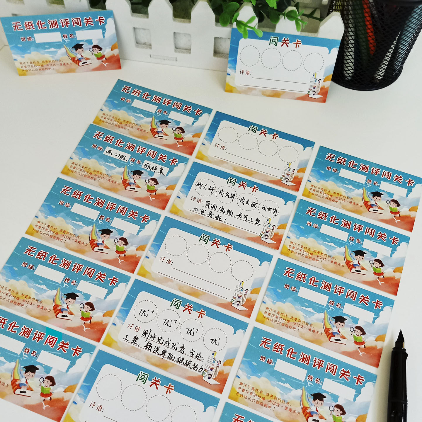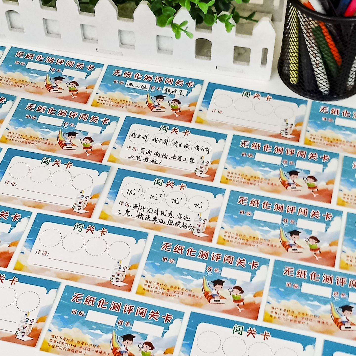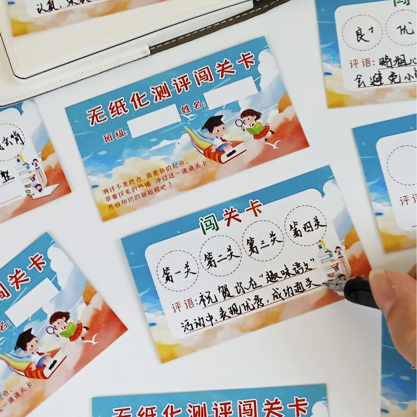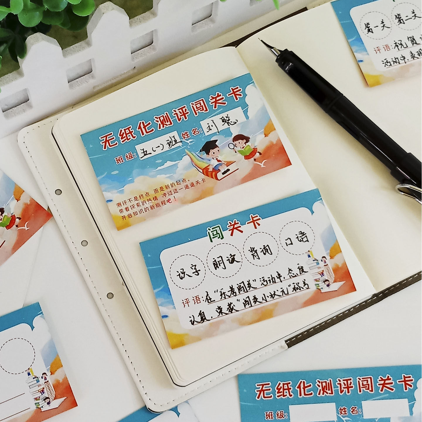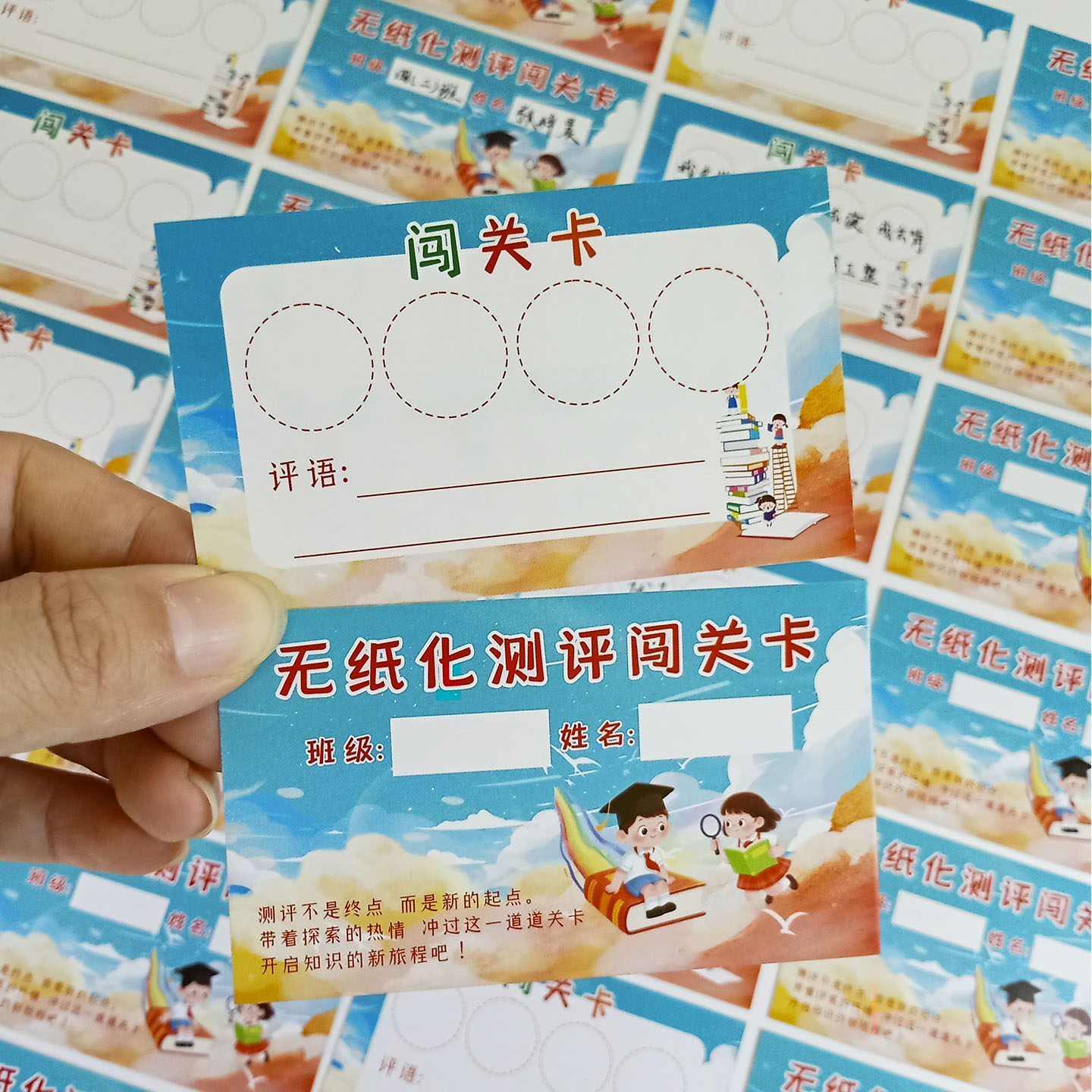 📚 一二年级无纸化测评闯关卡创意期末考试语文数学英语通关集章卡片