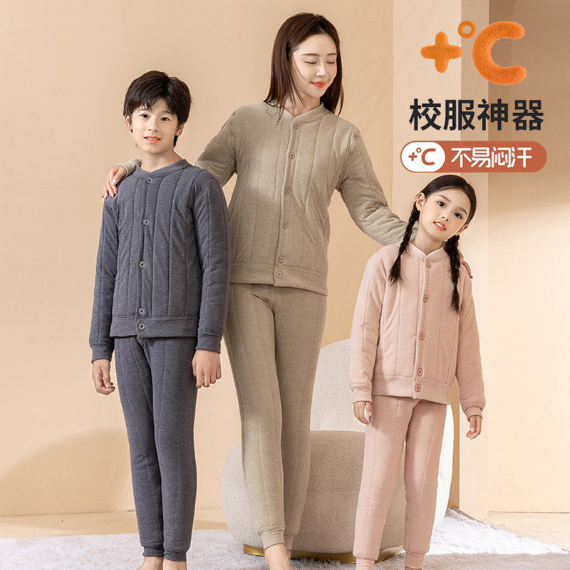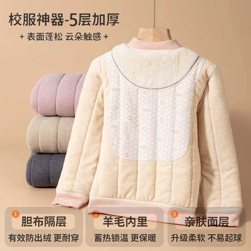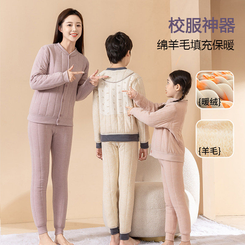 📚 校服神器儿童羊毛保暖内衣女男童东北加厚羊绒棉衣服棉裤套装冬季
