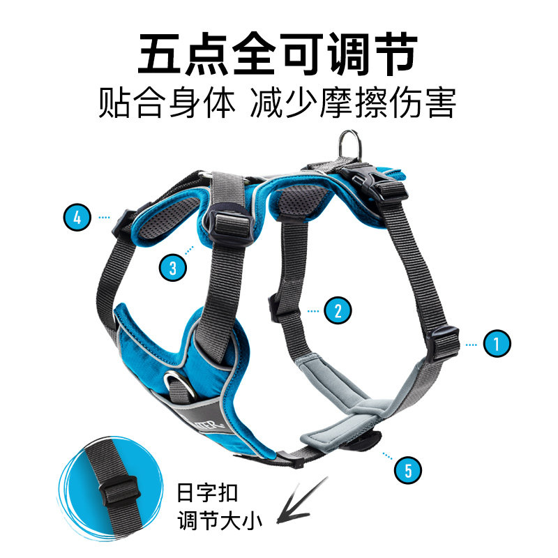 📚 德国hunter反光宠物狗狗宠物减震胸背带大型犬防爆冲牵引绳舒适