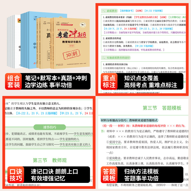 📚 上岸熊中学科目三教资2026下半年考试资料重点三色学霸笔记初中高中综合素质教学知识与能力教师资格证用书教材语文数学英语