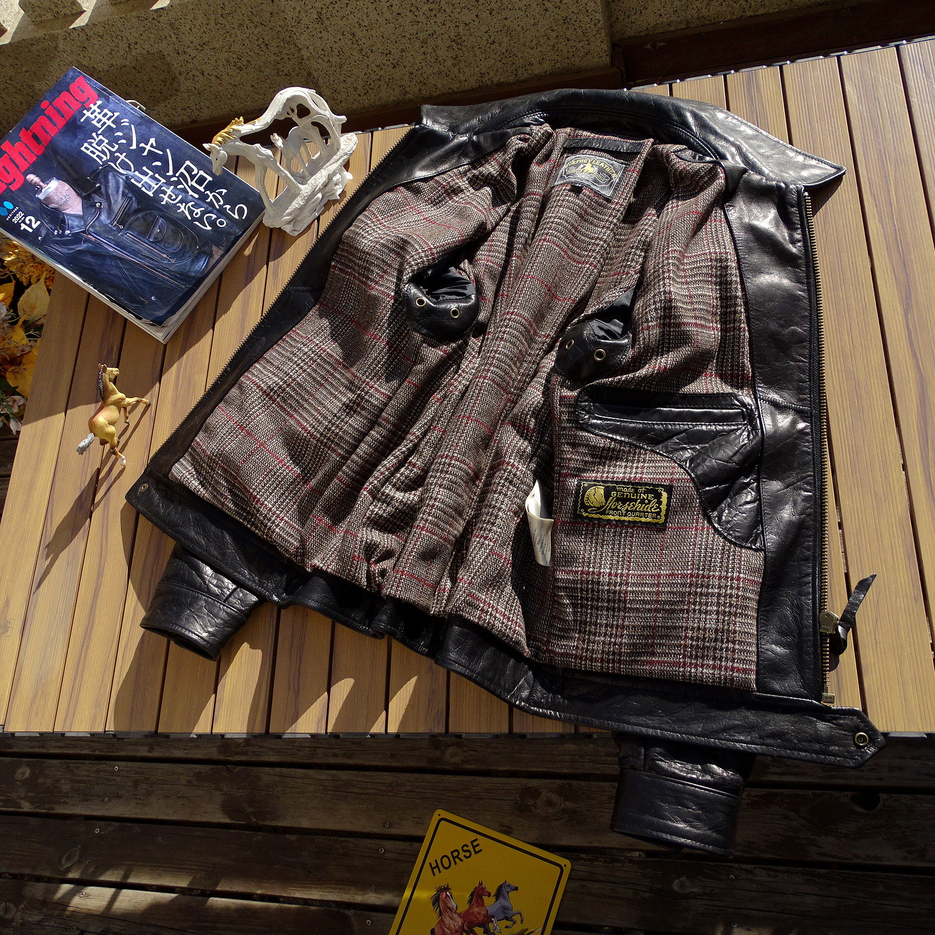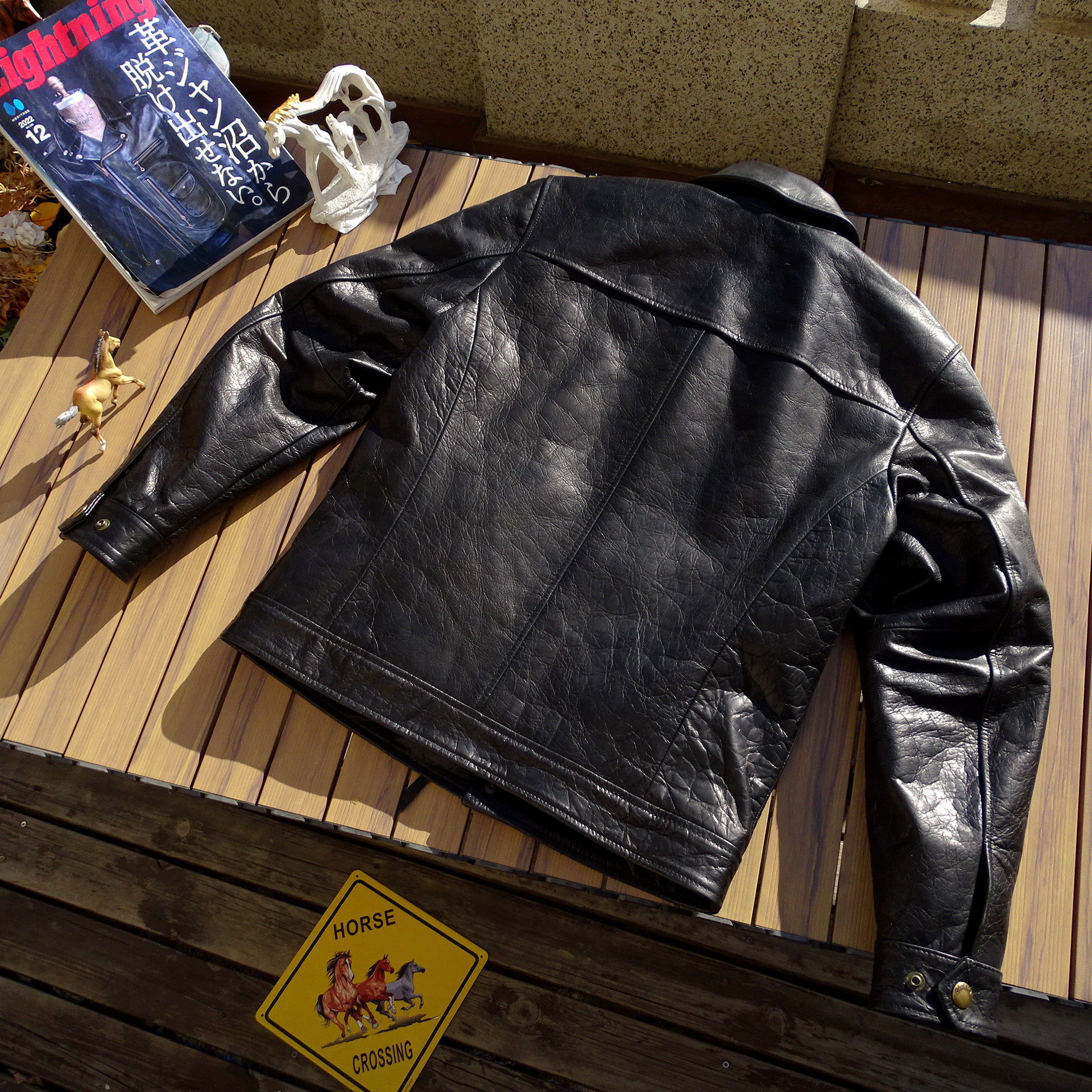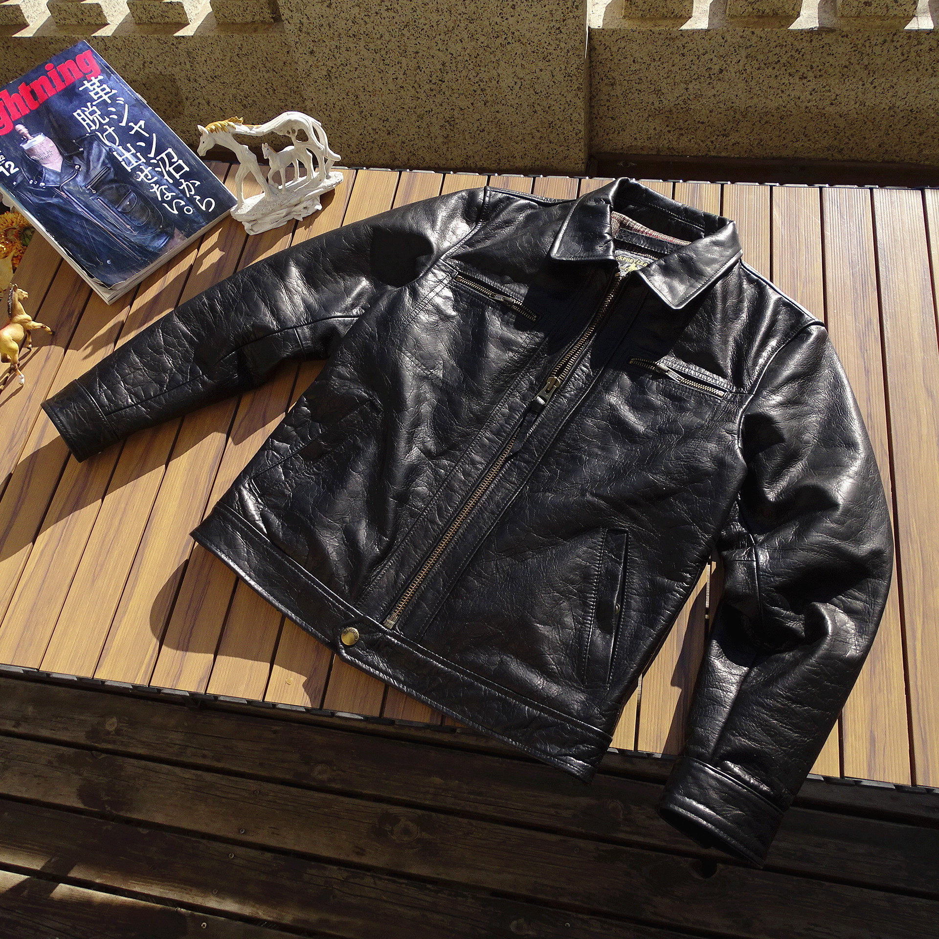 📚 布拉德皮特【日本水波纹马皮】日本进口拉链扣件男翻领修身真皮衣