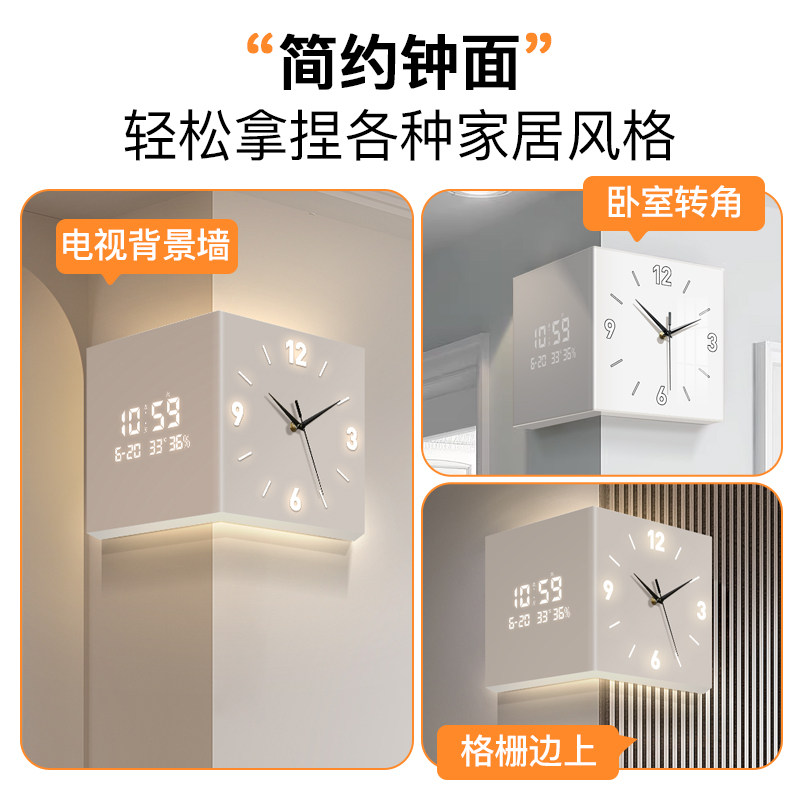📚 2026新款双面挂钟客厅转角时钟简约高级感创意壁灯万年历电子钟表