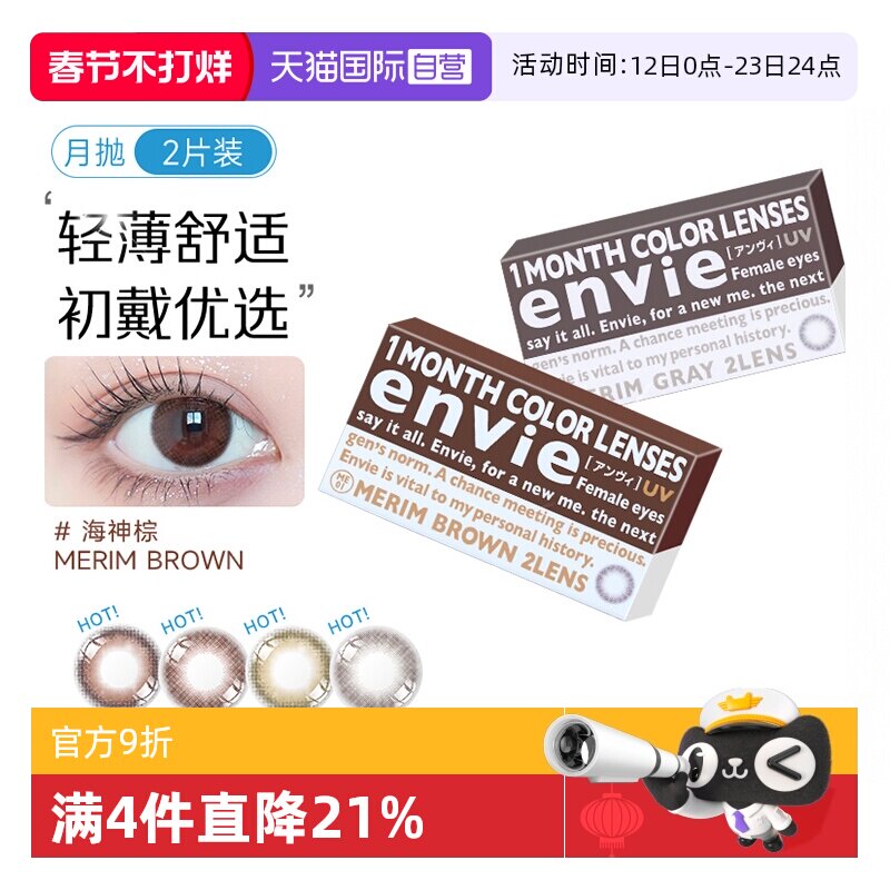📚 【自营】envie美瞳月抛2片小直径女彩色隐形近视隐形眼镜自然混血