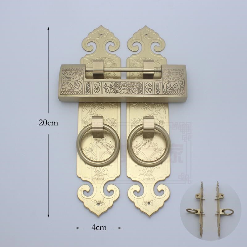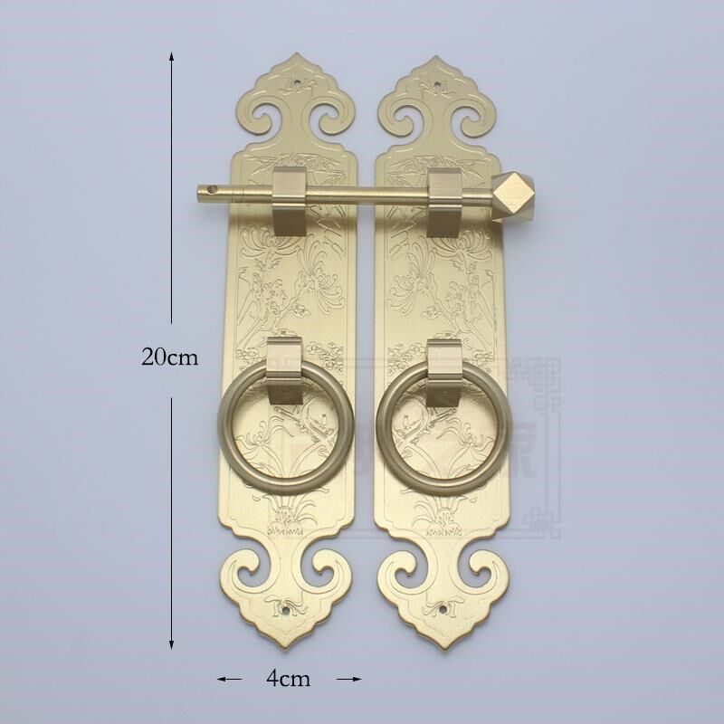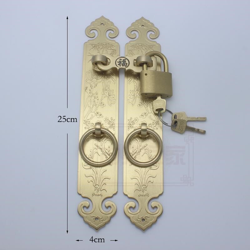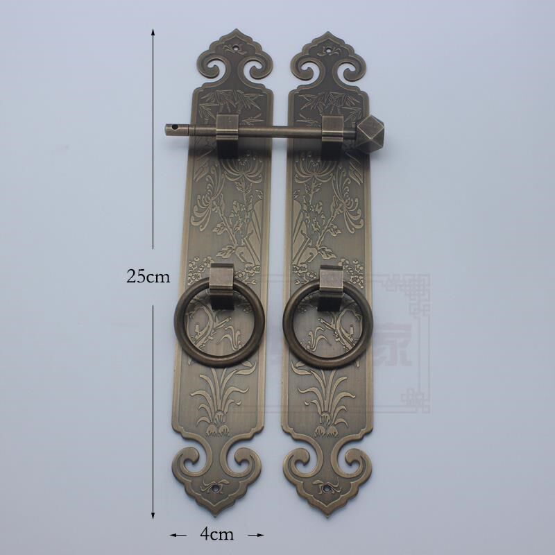 📚 中式大门格栅门木门全铜拉手加厚刻花门窗铜把手四季花门挂锁古铜