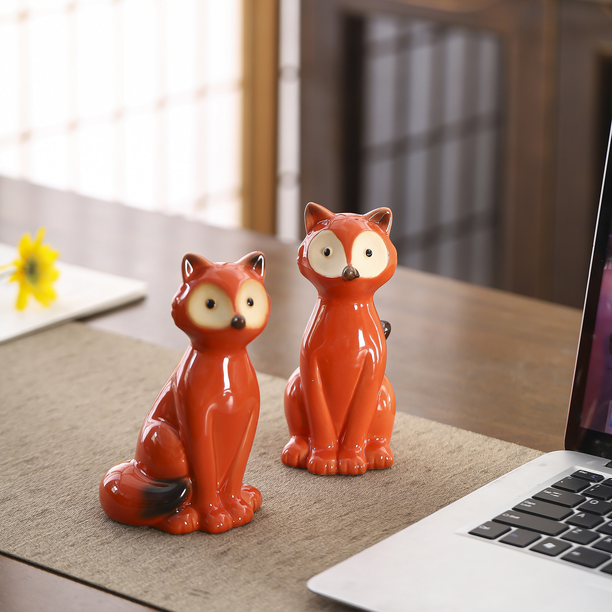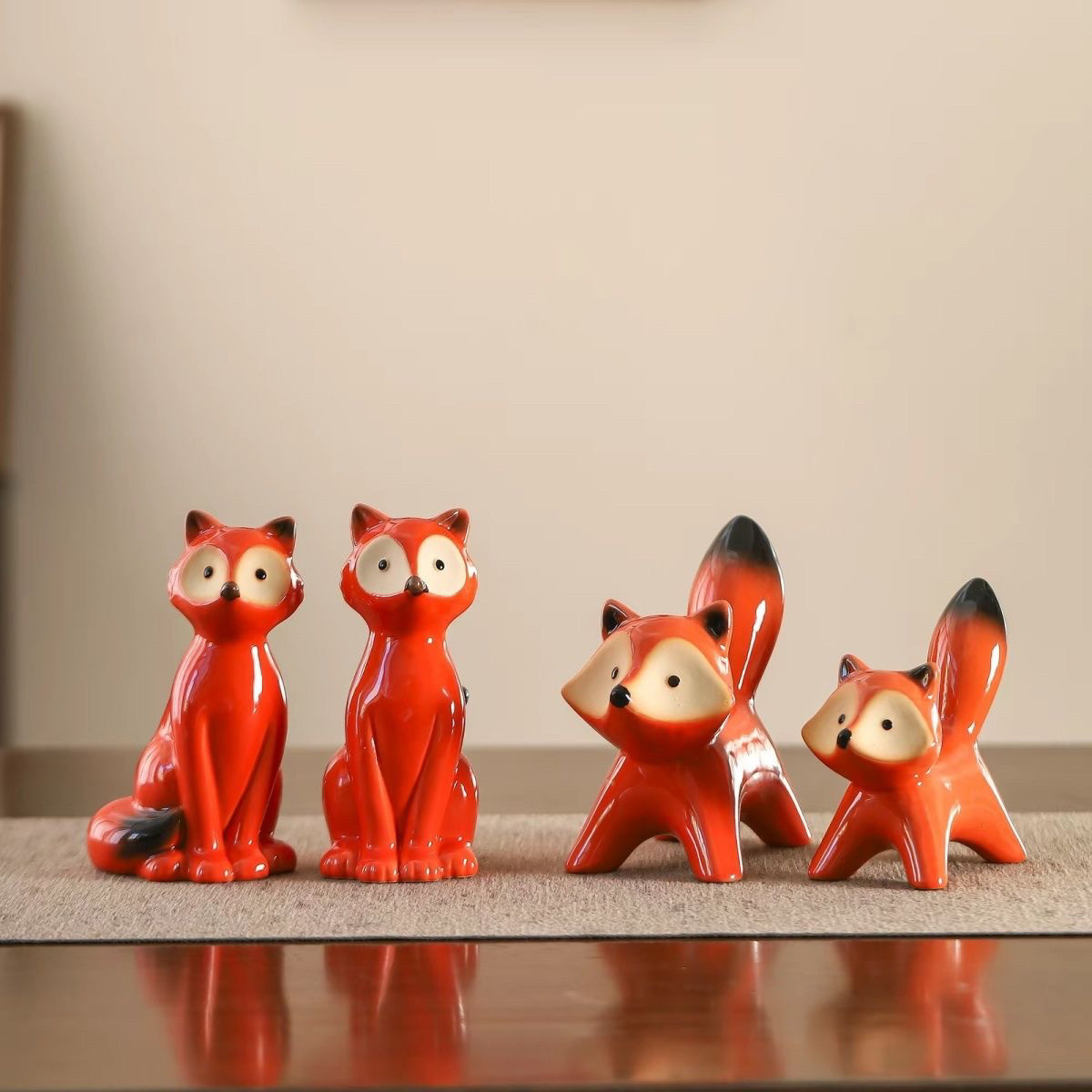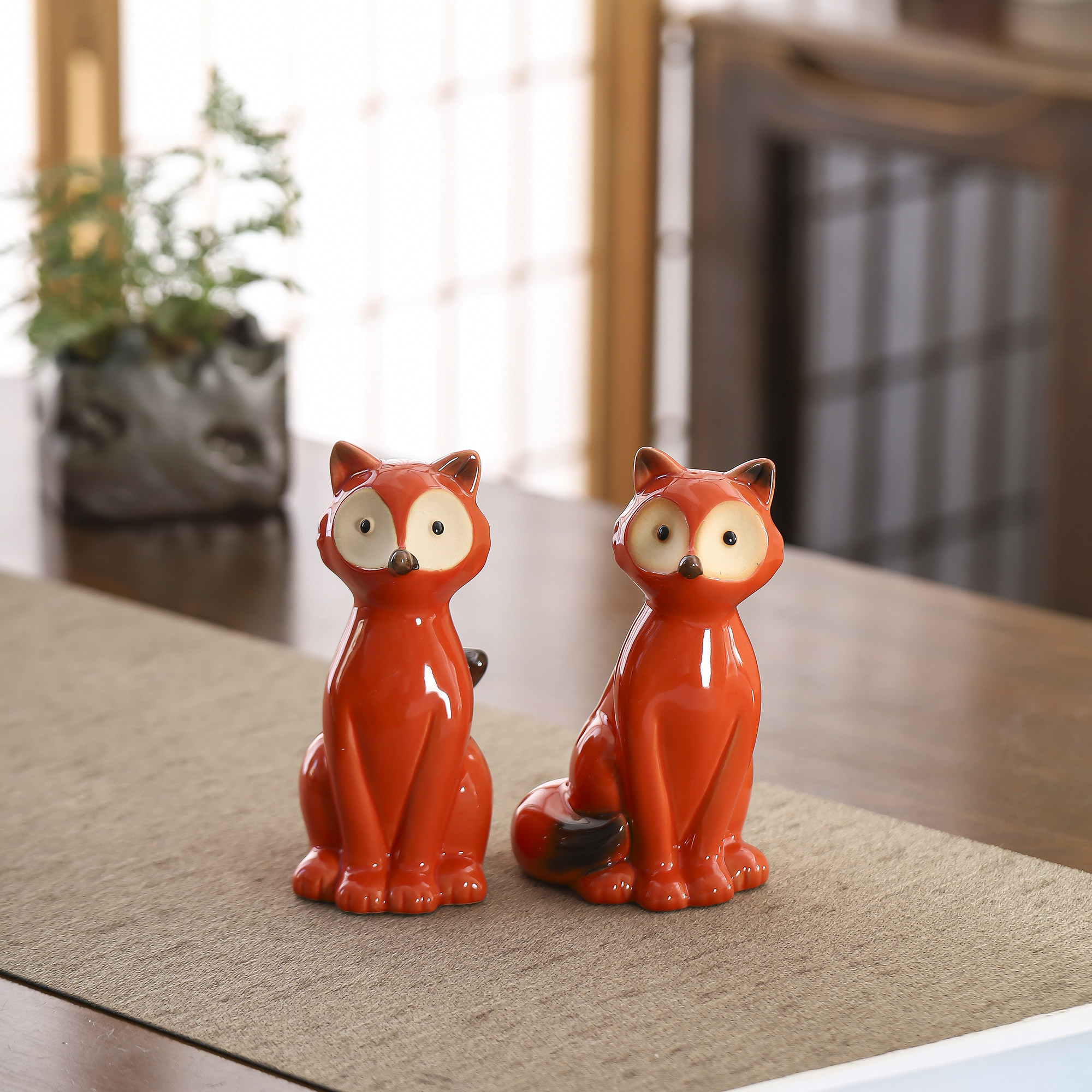 📚 景德镇陶瓷手工狐狸摆件客厅玄关桌面装饰摆设创意情侣新婚小礼物