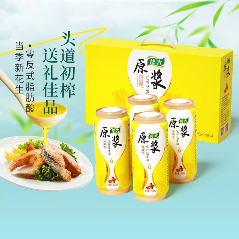 📚 龙大原浆花生油压榨一级520mlx4小罐礼盒装