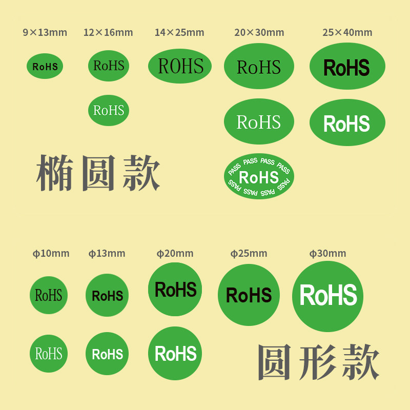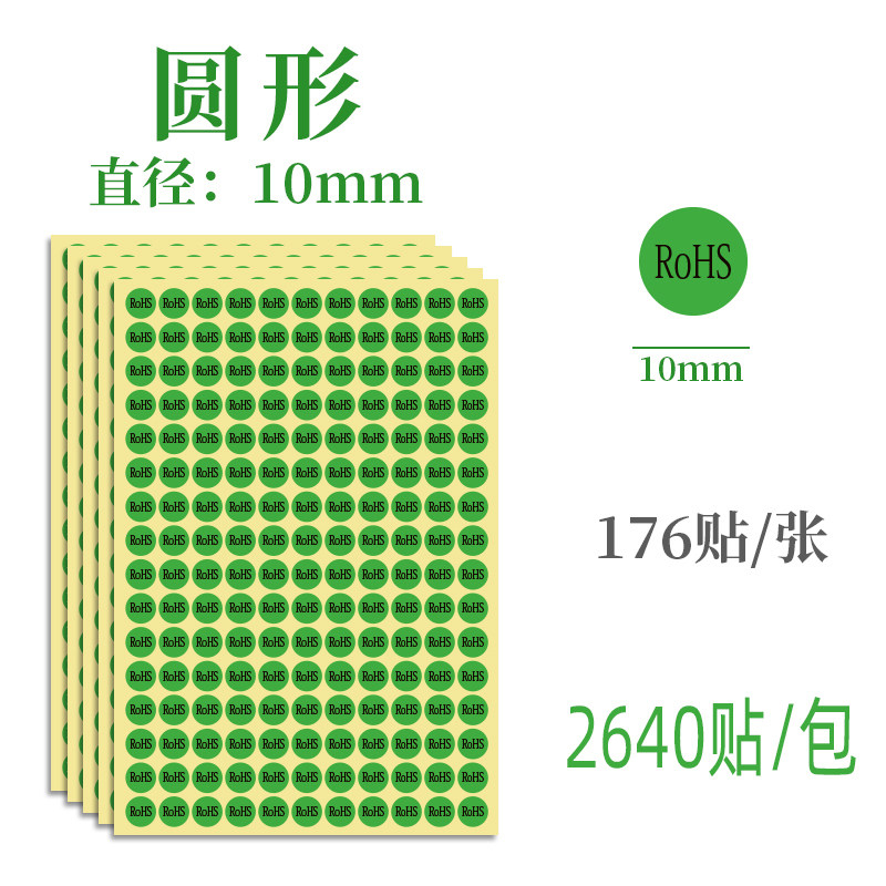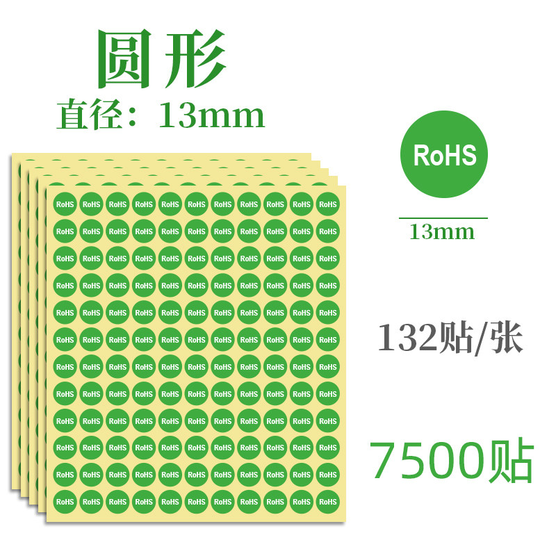 📚 10/13mm绿色黑白字RoHS标签纸优质警示语环保标识贴纸圆形不干胶