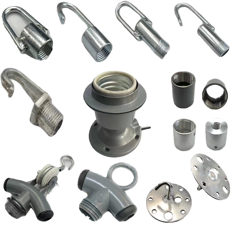 📚 工矿灯配件工程压铸铝灯头灯座螺纹链条吊钩螺杆挂钩接头三通螺母